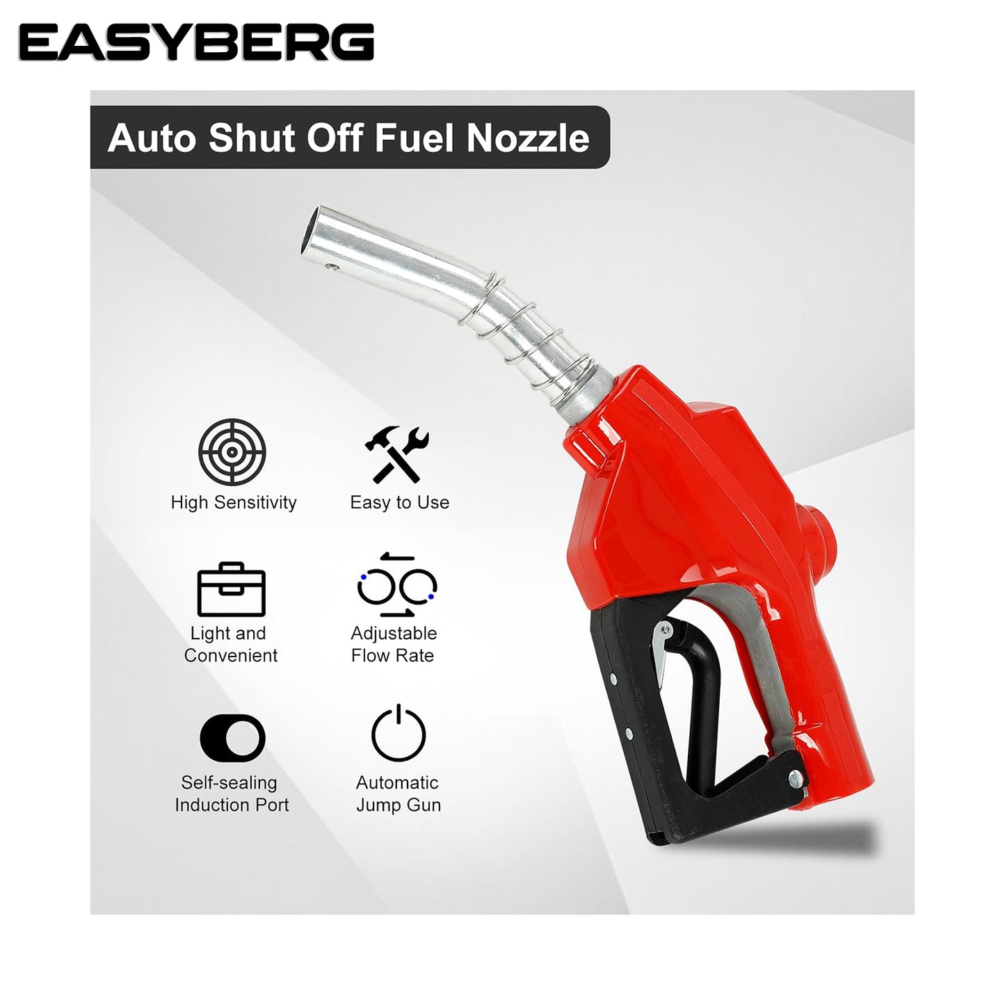 " NPT Auto Fuel Nozzle, Auto Shut Off Fuel Nozzle with 3-speed Padlock, Spout 1" for Gasoline, Diesel, Biodiesel and Kerosene, Red
