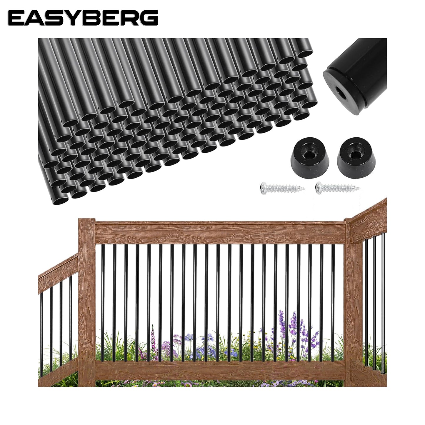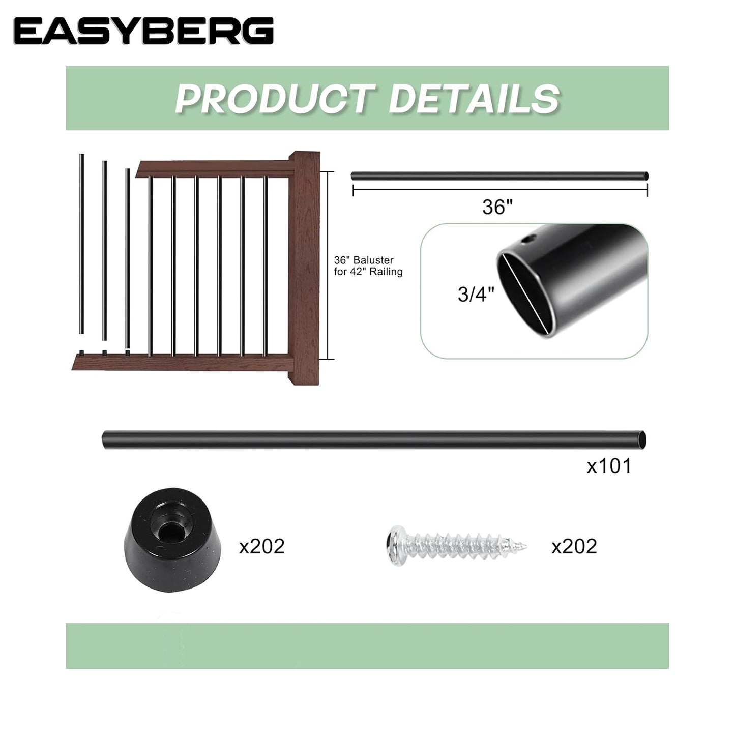 101 Pack 36 Inch Aluminum Deck Balusters 3/4" Diameter Hollow Round Balusters for Deck Railing Deck Spindles with Screws for Railing Fencing Balusters Staircase Spindles with Connectors