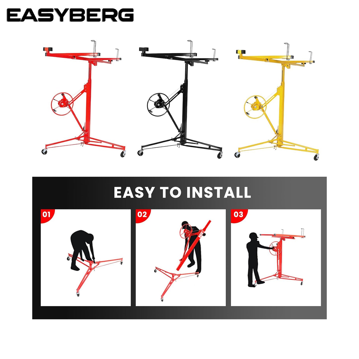 11FT Drywall Lift Panel Hoist Jack Lifter Dry Wall Rolling Caster Lifter Jack Lifter Lifter Construction Tool 150LB Heavy Duty Adjustable Telescopic Arm (Black)