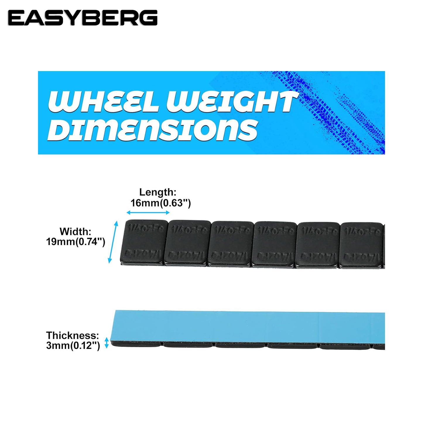 1/4 oz Stick on Wheel Weights, Adhesive Back, Easy to Peel, 36 OZ/Box 144pcs, Black Tire Weight for Cars, Trucks, SUVs, Motorcycles, Low Profile