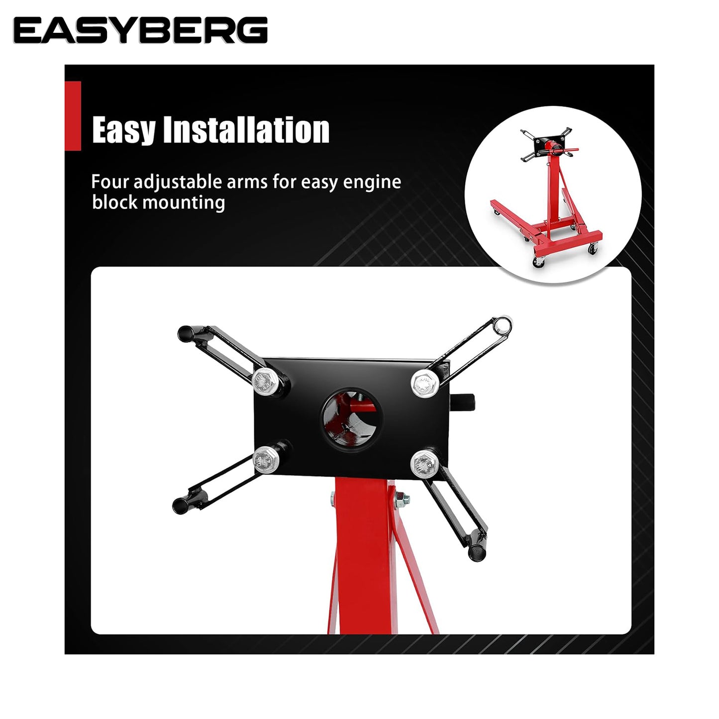 Engine Stand, 3000lbs Capacity Engine Motor Stand with 360 Degree Rotating Head, Heavy-Duty Foldable Engine Lift Stand with 6 Wheels, 4 Adjustable Arms, Red