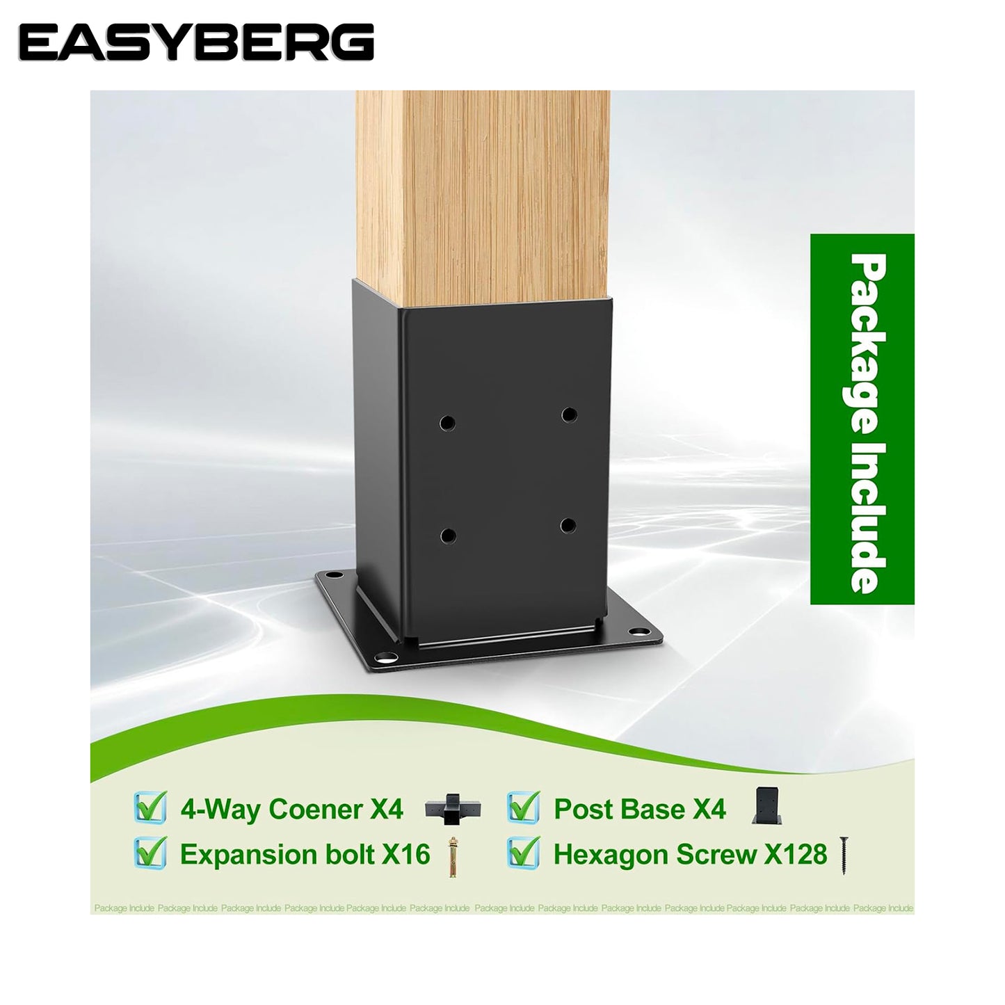 Heavy Duty Steel Pergola Brackets Kit 4-Way Right Angle Corner Bracket with Post Base and Screws for 4"x 4" (Actual 3.5" X 3.5") Lumber,DIY Pergola Suitable for Gazebo,Patio, Log Cabin Outdoor