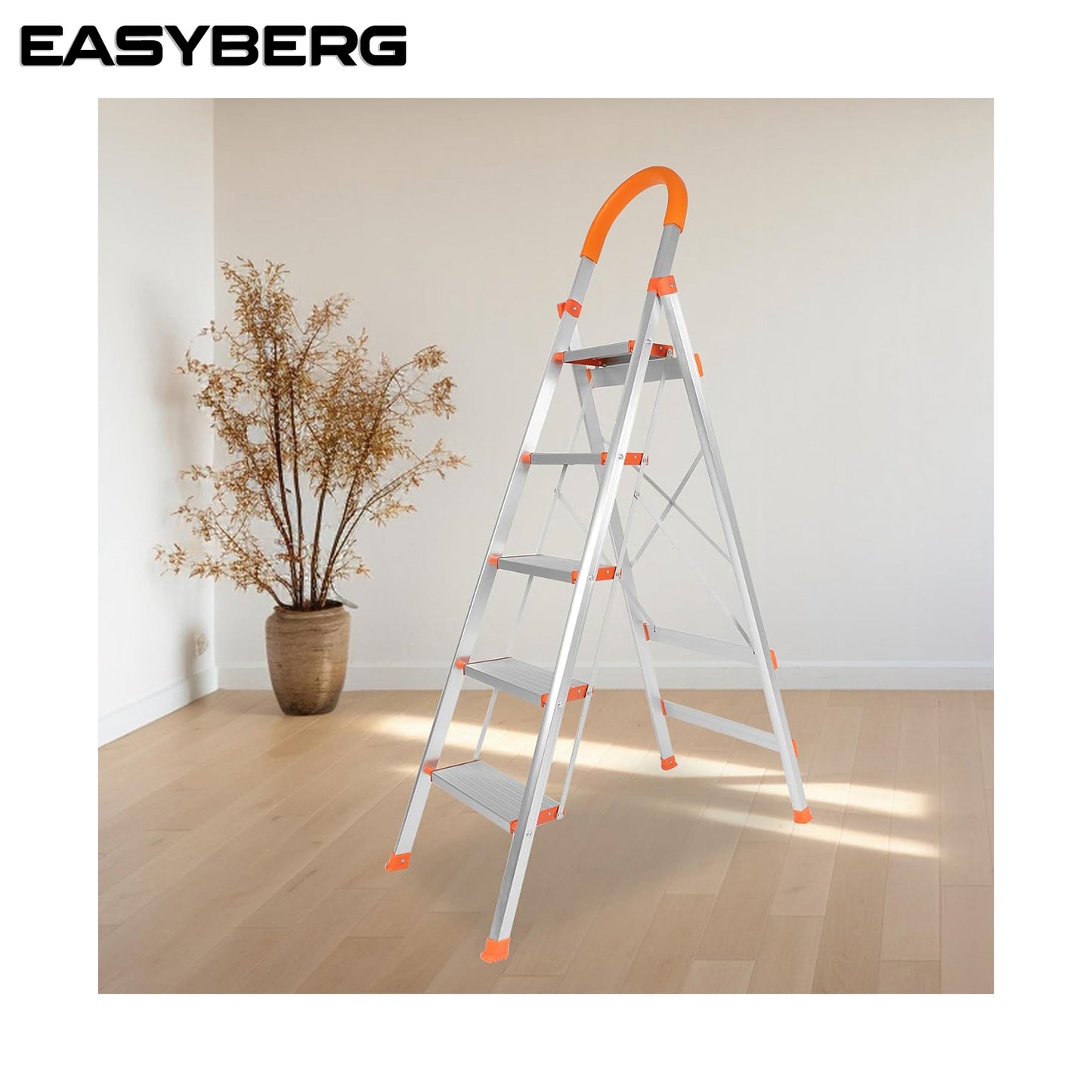 Folding Multi-Purpose Aluminum 5-Step Stool, Non Slip Rubber handrail, Portable Household Ladder
