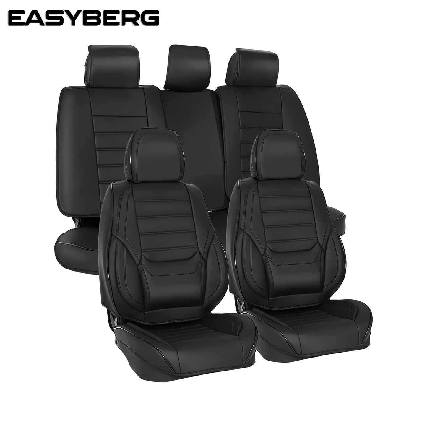 Full Sets of Car Waterproof Leather Seat Covers,Black Car Seat Cover,Car Seat Covers Front Seats and Back,Compatible with Most Cars, SUVs, Trucks and Pickups