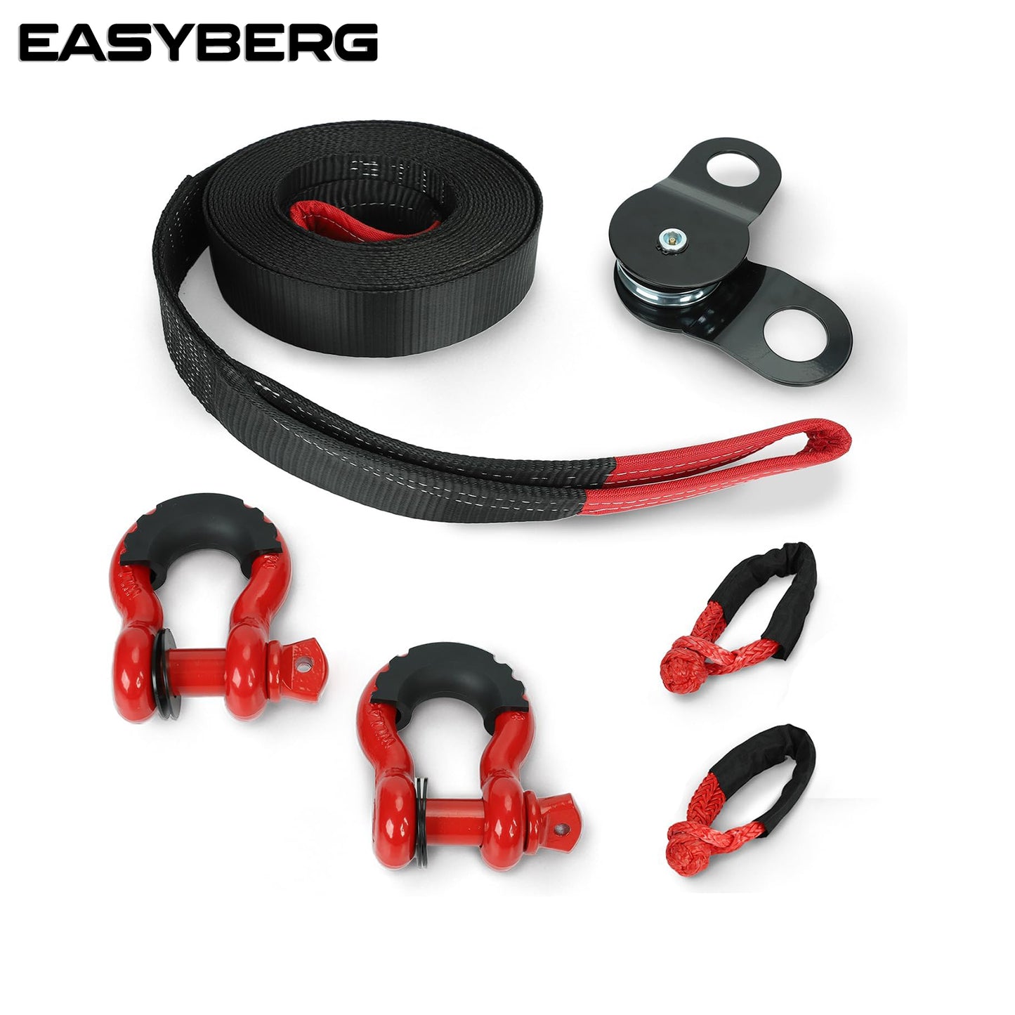 Heavy Duty Recovery Kit, 3" x 30' 14000lbs Tow Strap with 1/2" Soft Shackle Rope Synthetic Tow Recovery Strap 38,000LBS + 8 Ton Recovery Pulley Winch Snatch Block (Red)