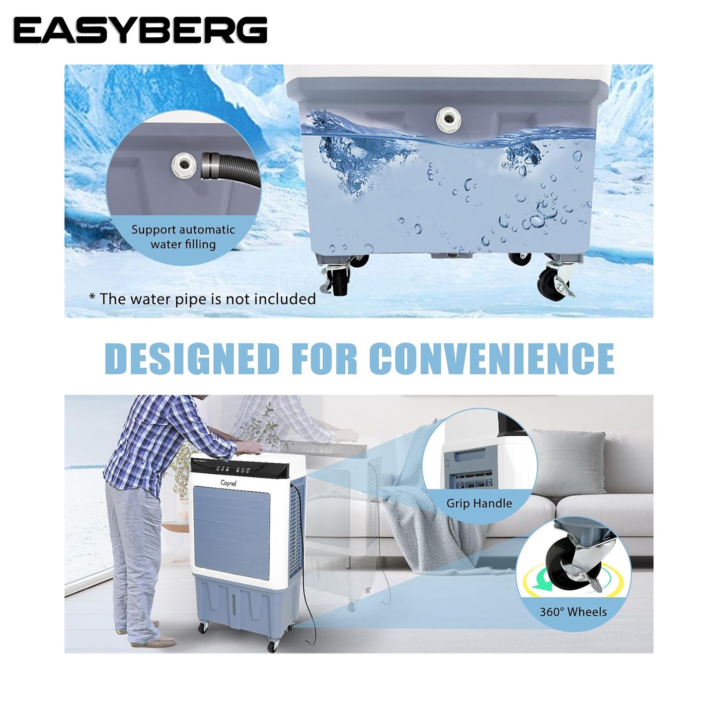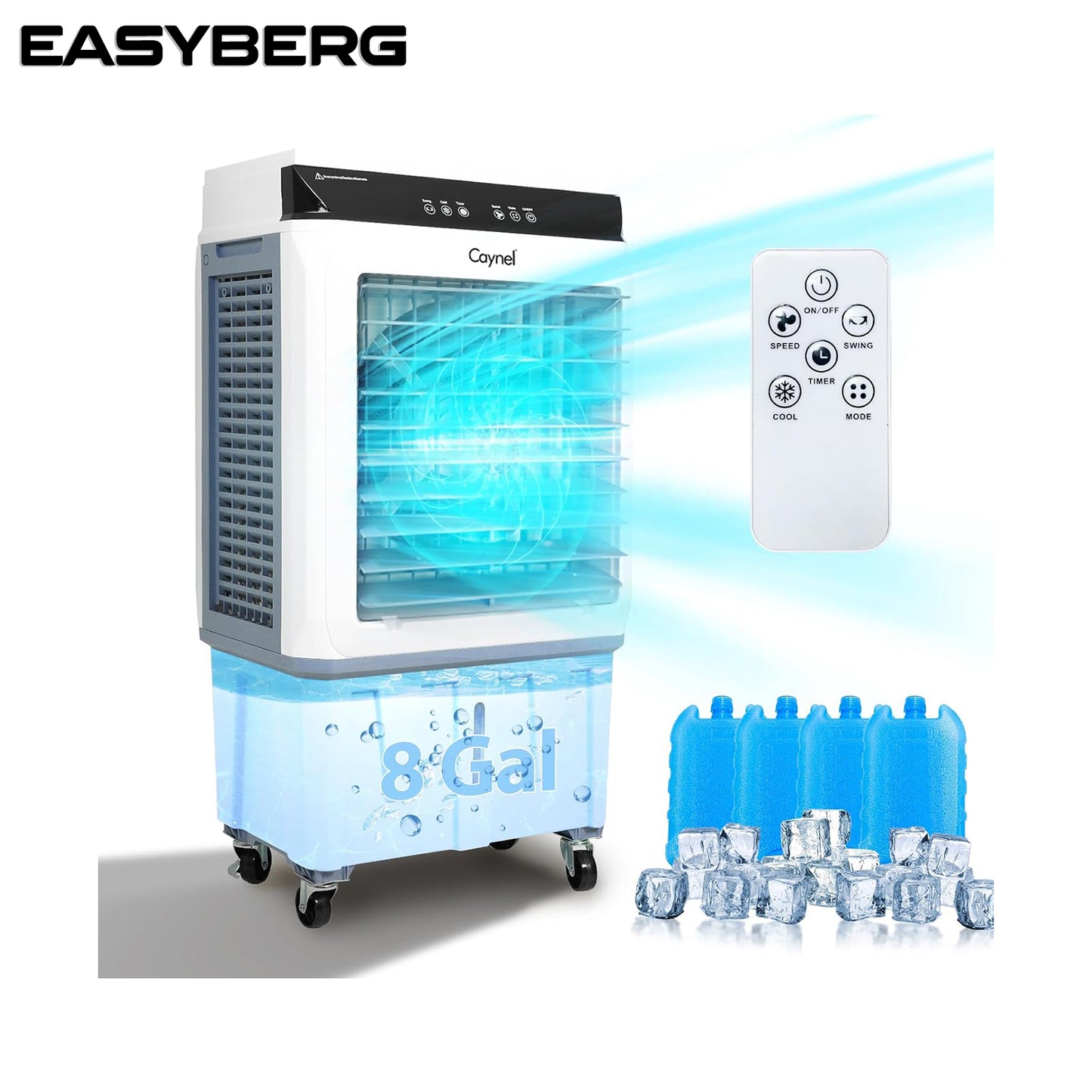 Evaporative Air Cooler,3-IN-1 Windowless Portable Air Conditioner,Oscillation Swamp Cooler and Humidification-Includes Ice Packs-12 Hour Timer&Remote,Ideal for Home, Office, Bedroom, Kitchen