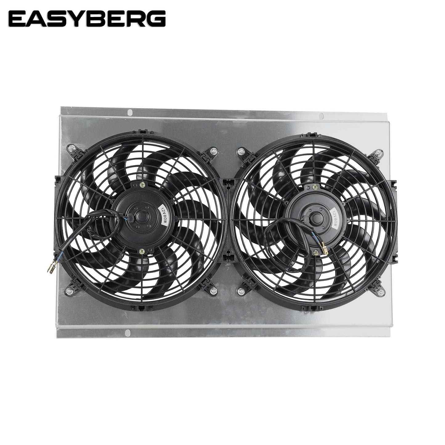 Full Aluminum Shroud+2X 12" Slim Fans+Thermostat Relay Kit Compatible with Radiator 1982-2002 Chevy S10 Blazer Corvette