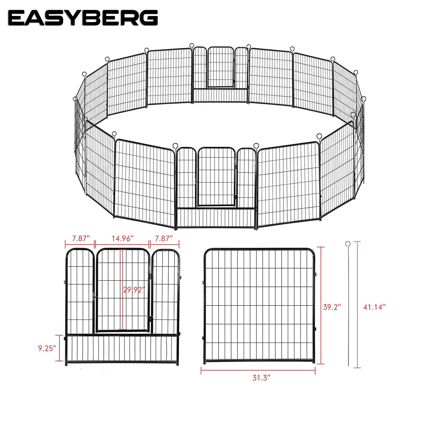 Foldable Metal Dog Playpen Outdoor, 16 Panels 40 inches Height Exercise Pen Indoor Pet Fence Barrier Kennel for Small/Medium/Large Dogs Cats Rabbits
