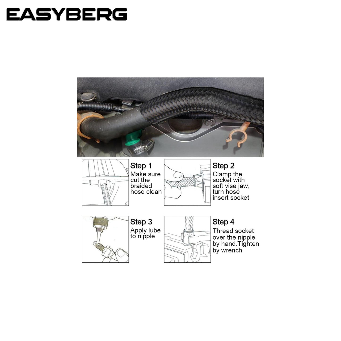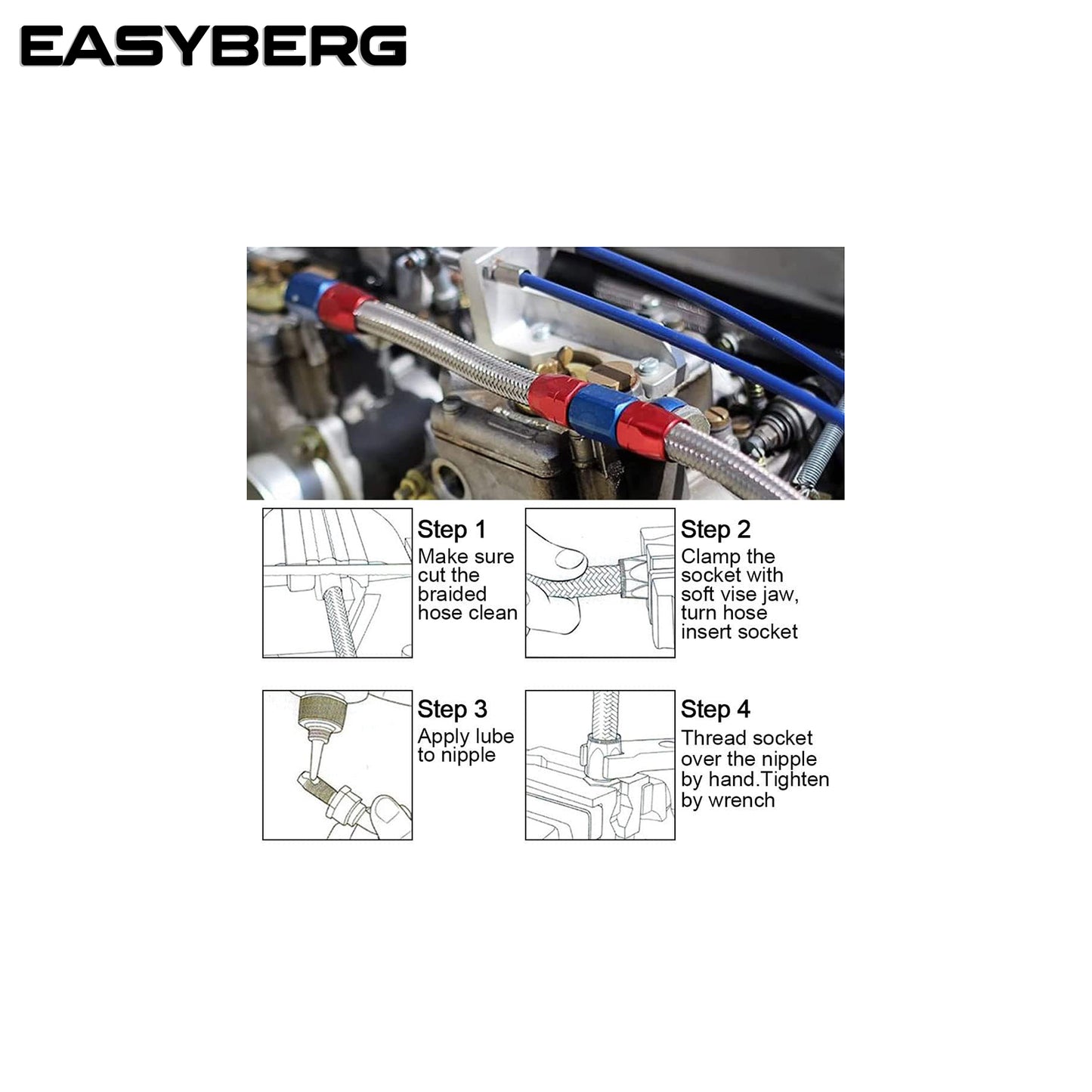 6AN 20FT Fuel Line Hose Kit,E85 Nylon Braided Fuel Hose 20FT(5/16Inch ID) with 10PCS Swivel Fuel Hose Fitting Adapter Kit Silver