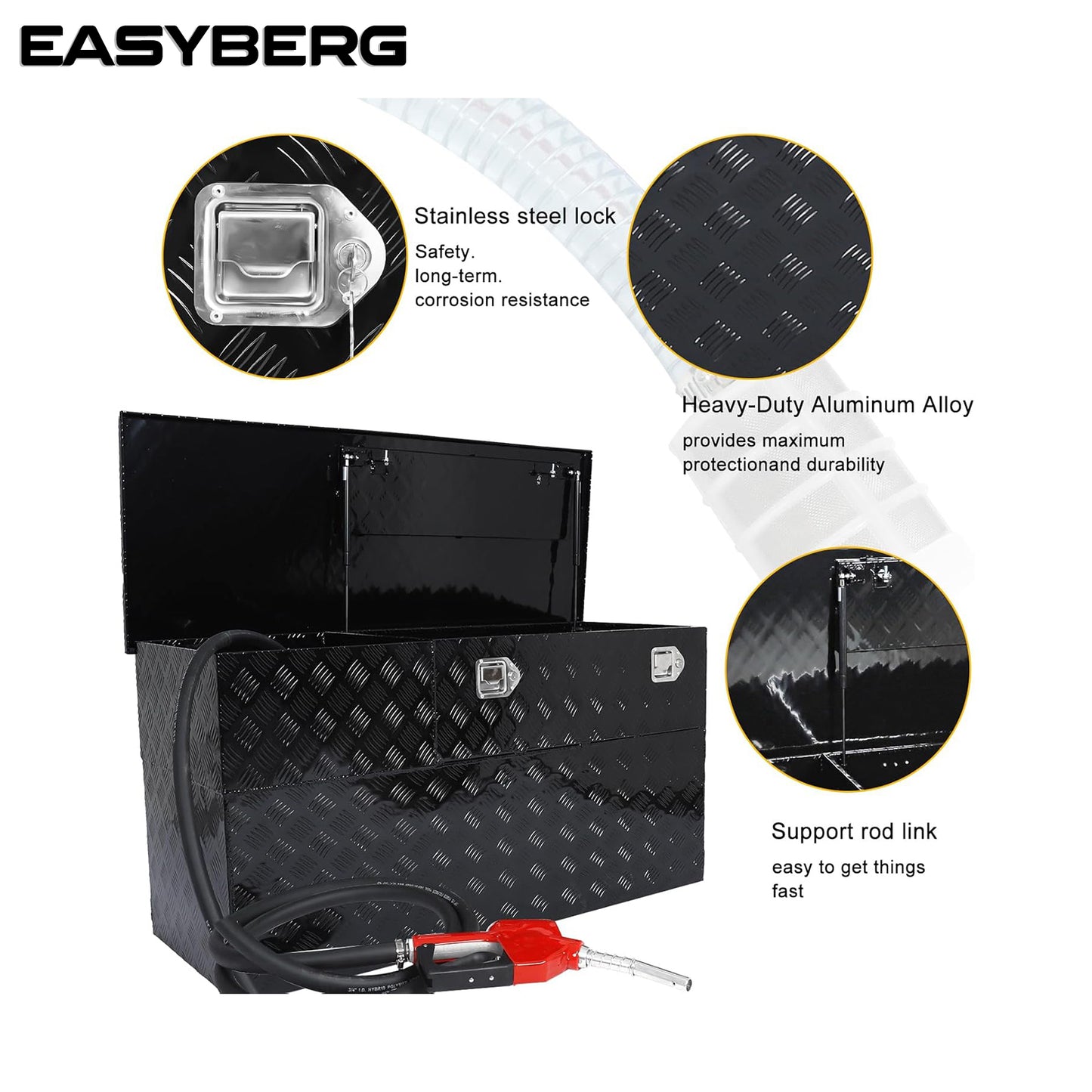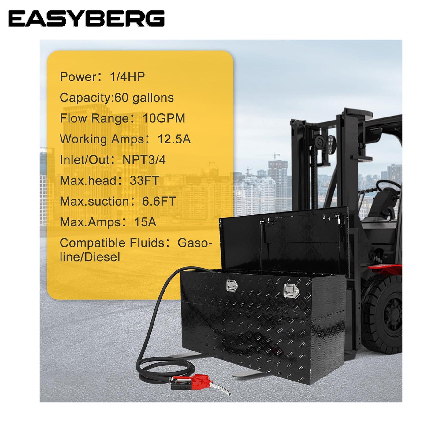 60-Gal Aluminum Transfer Fuel Tank Toolbox Combo/Auxiliary Gasoline Diesel Fuel Transfer Tank,10GPM with Drive Side Pump-Black