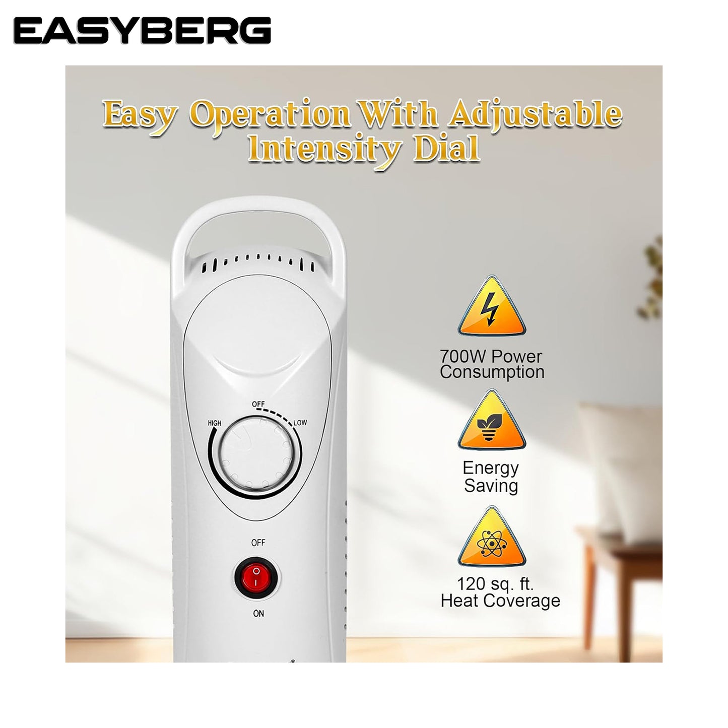 7-Fin Electric Indoor Space Heater, Quiet Portable Room Heat with Thermostat, Energy Saving, Full Room Heater with Safety Features, Fast Heating, White