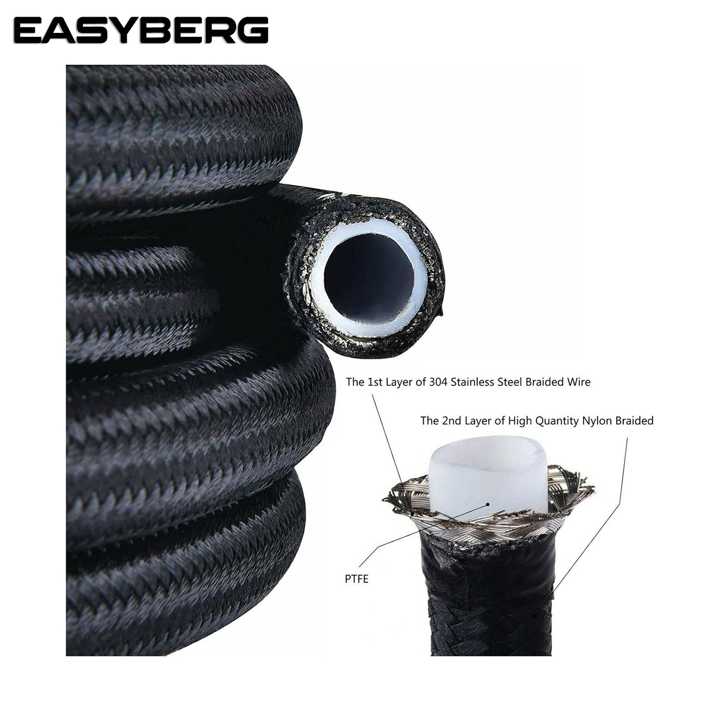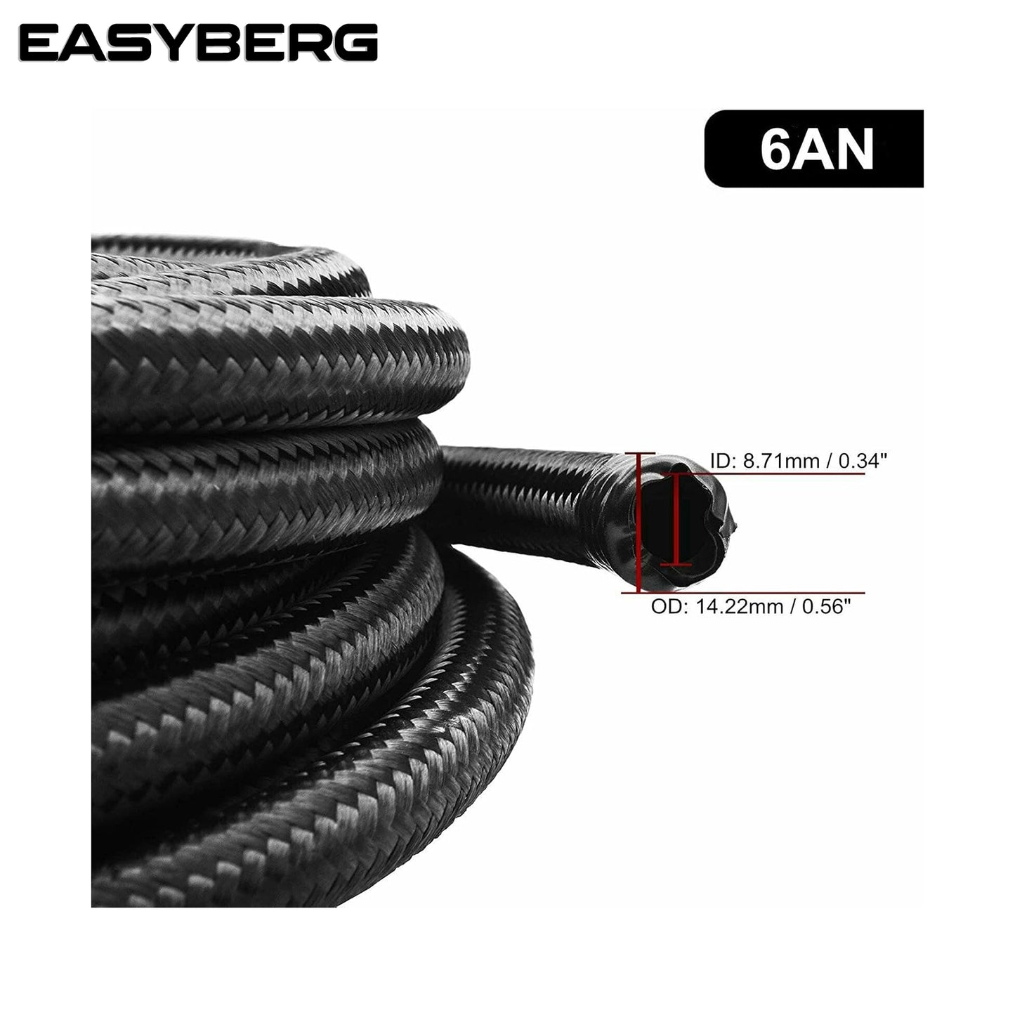 6AN 16Feet Stainless Steel Nylon Braided Fuel Line Hose Oil Gas Hose Oil Line Hose Black