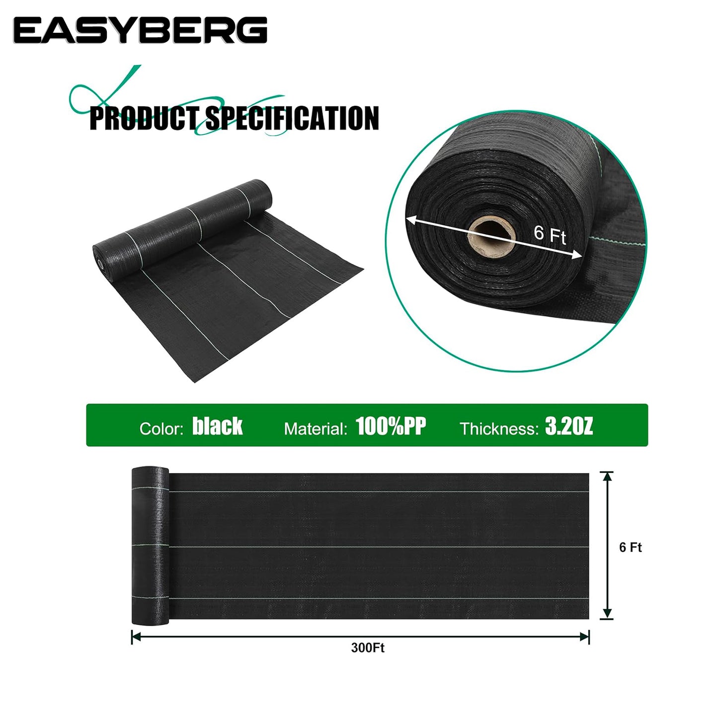 6ft x300ft Black Weed Barrier Landscape Fabric Heavy Duty 3.2OZ French Drain Fabric Ground Cover Weed Cloth for Erosion Control,Outdoor Gardening Weed Control Mat