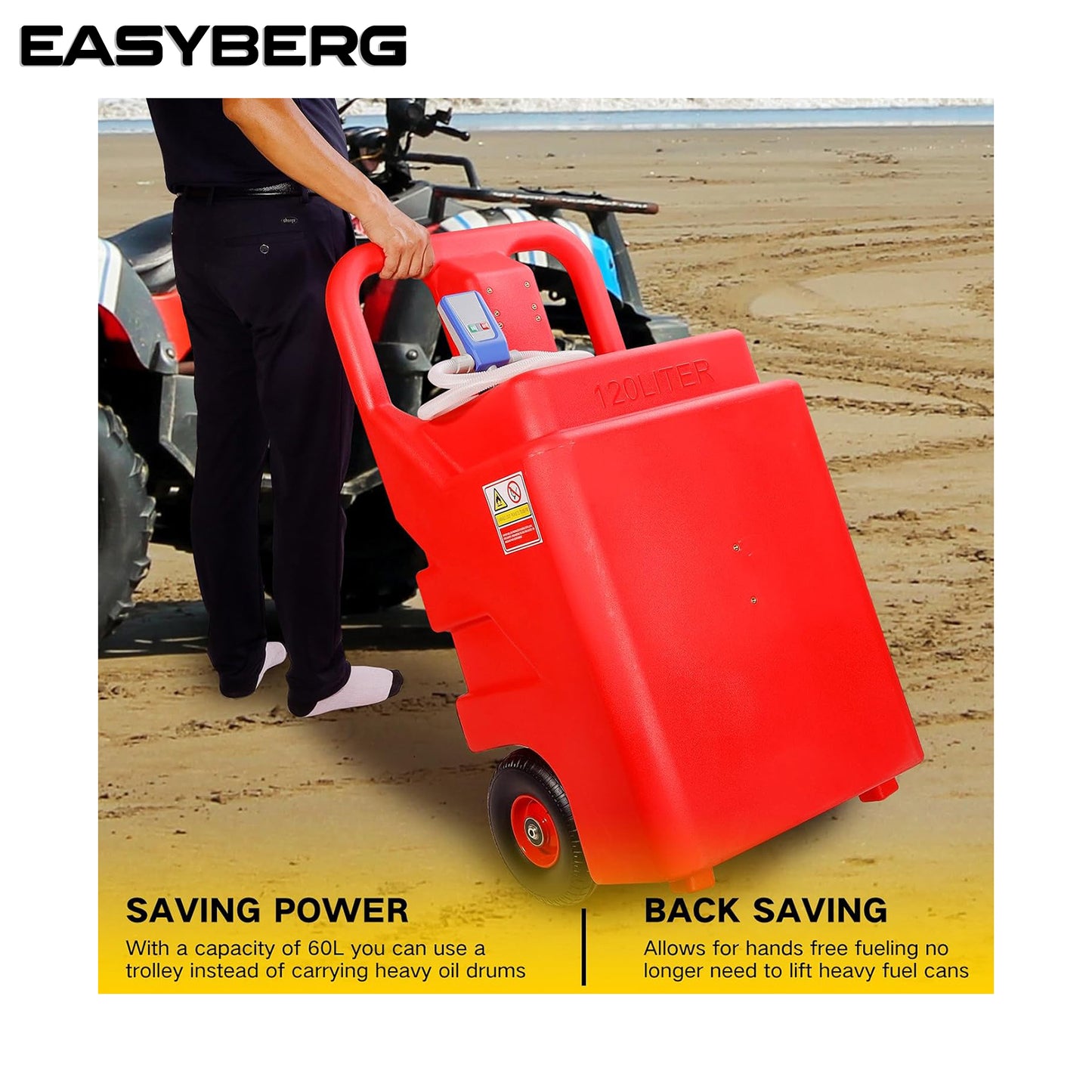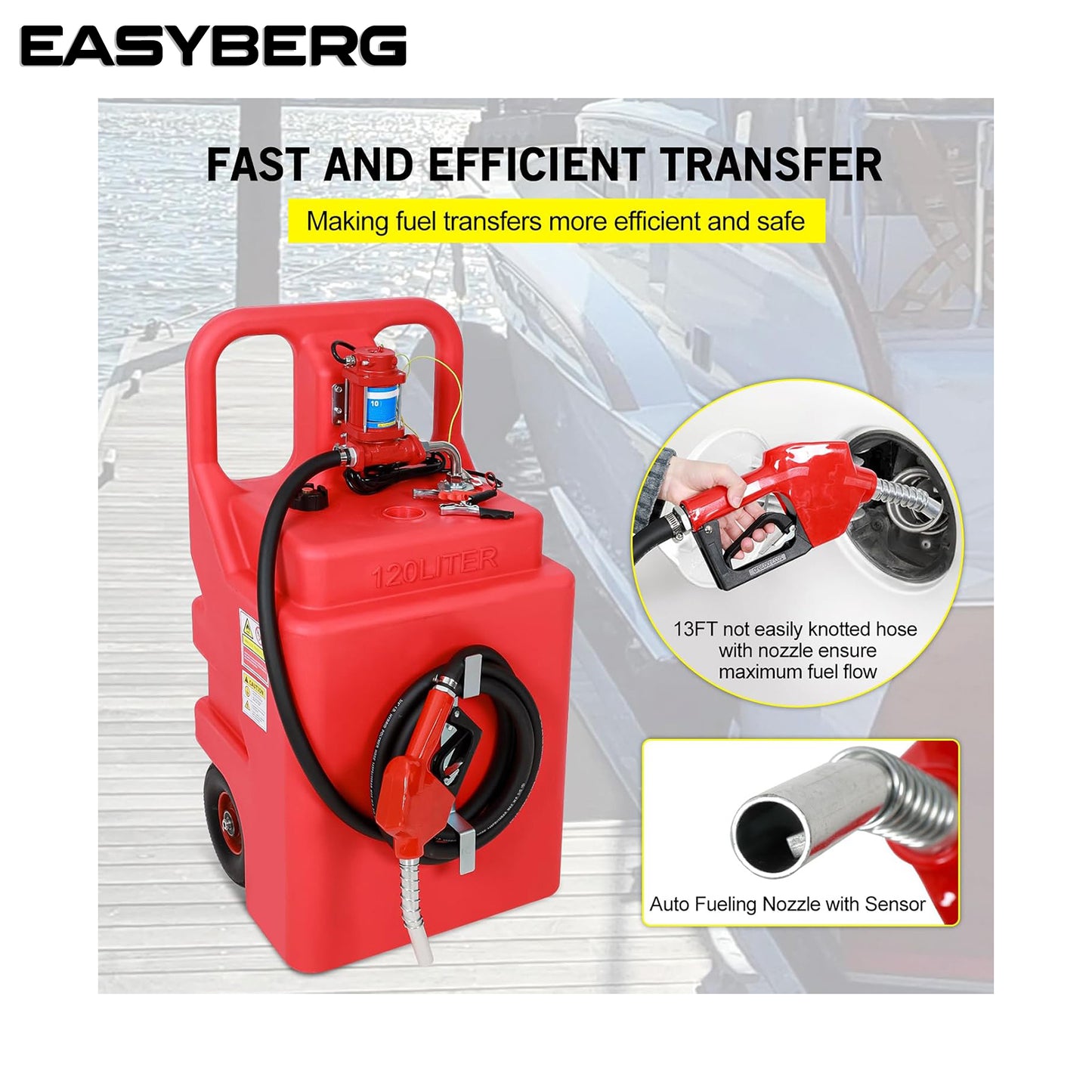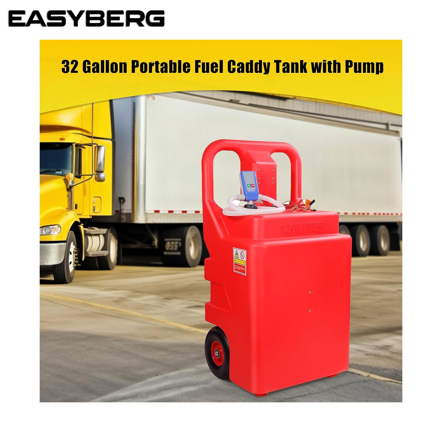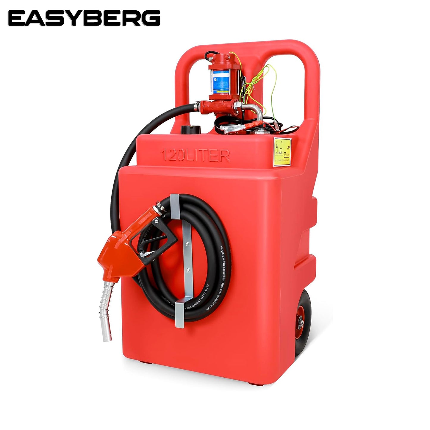 asoline Diesel Fuel Caddy Tank 32 Gallon, Portable Fuel Transfer Tank for Diesel & Gasoline with 12V 10GPM Electric Transfer Pump, Auto Fueling Nozzle, 13ft Hose, Sturdy Wheels