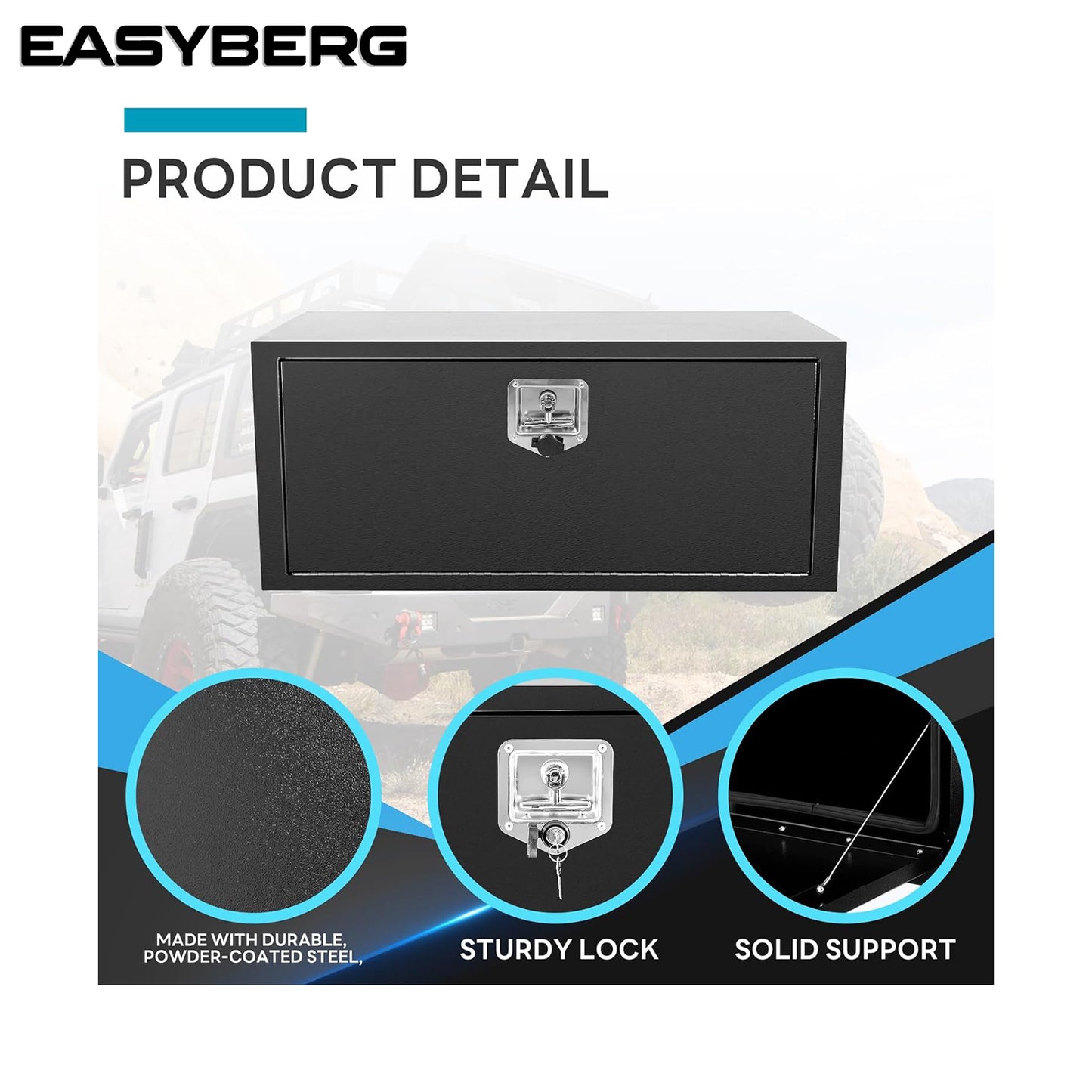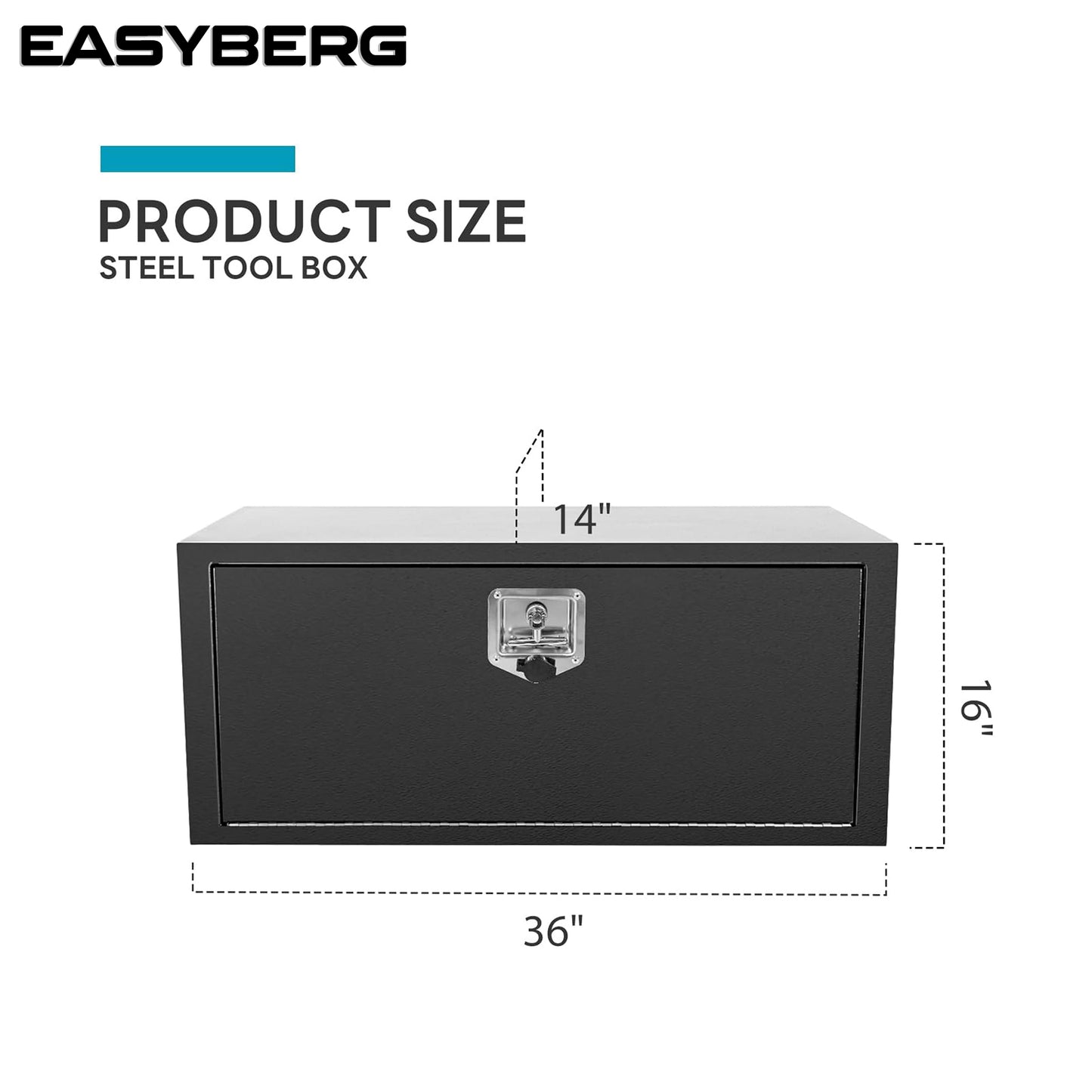 36 Inch Steel Black Underbody Tool Box - Waterproof Truck Tool Chest With Lockable Latch for RVs, ATVs, Trailers & Trucks (36"x14"x16")