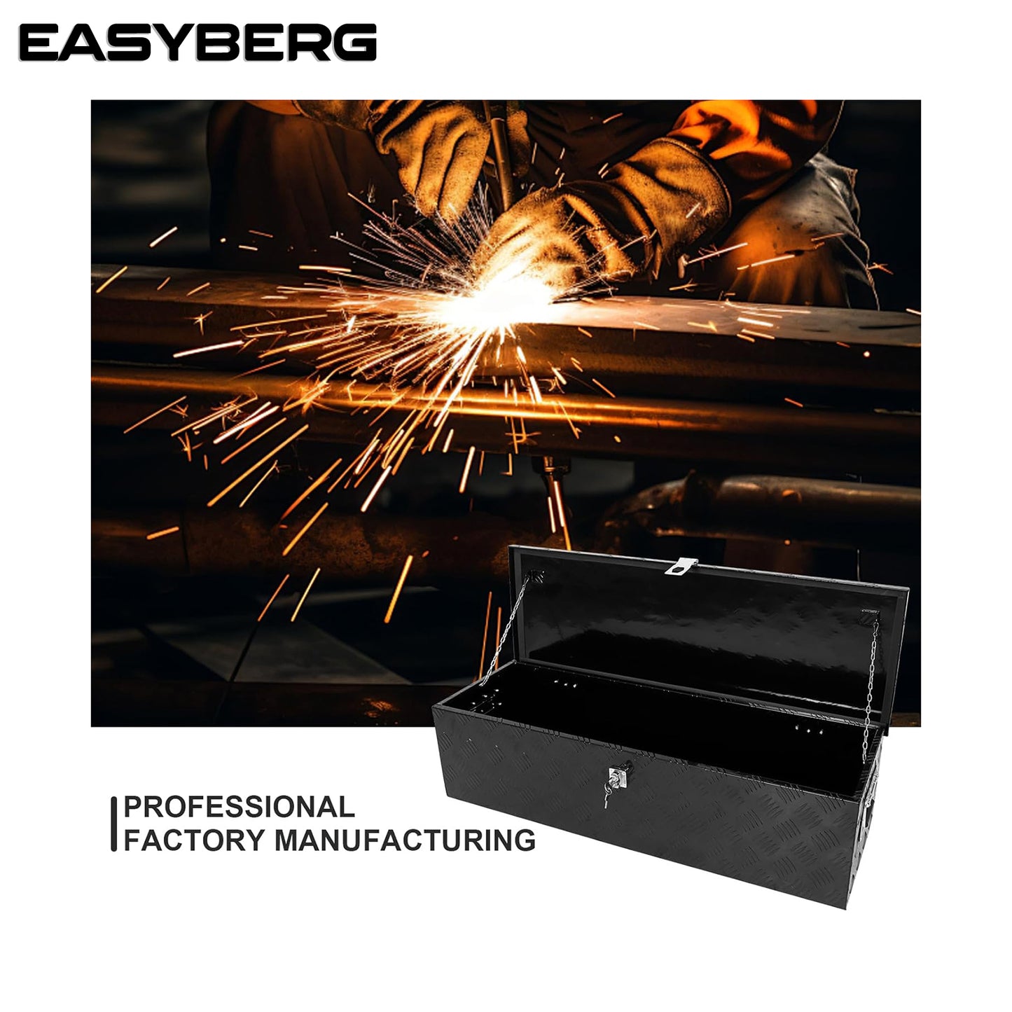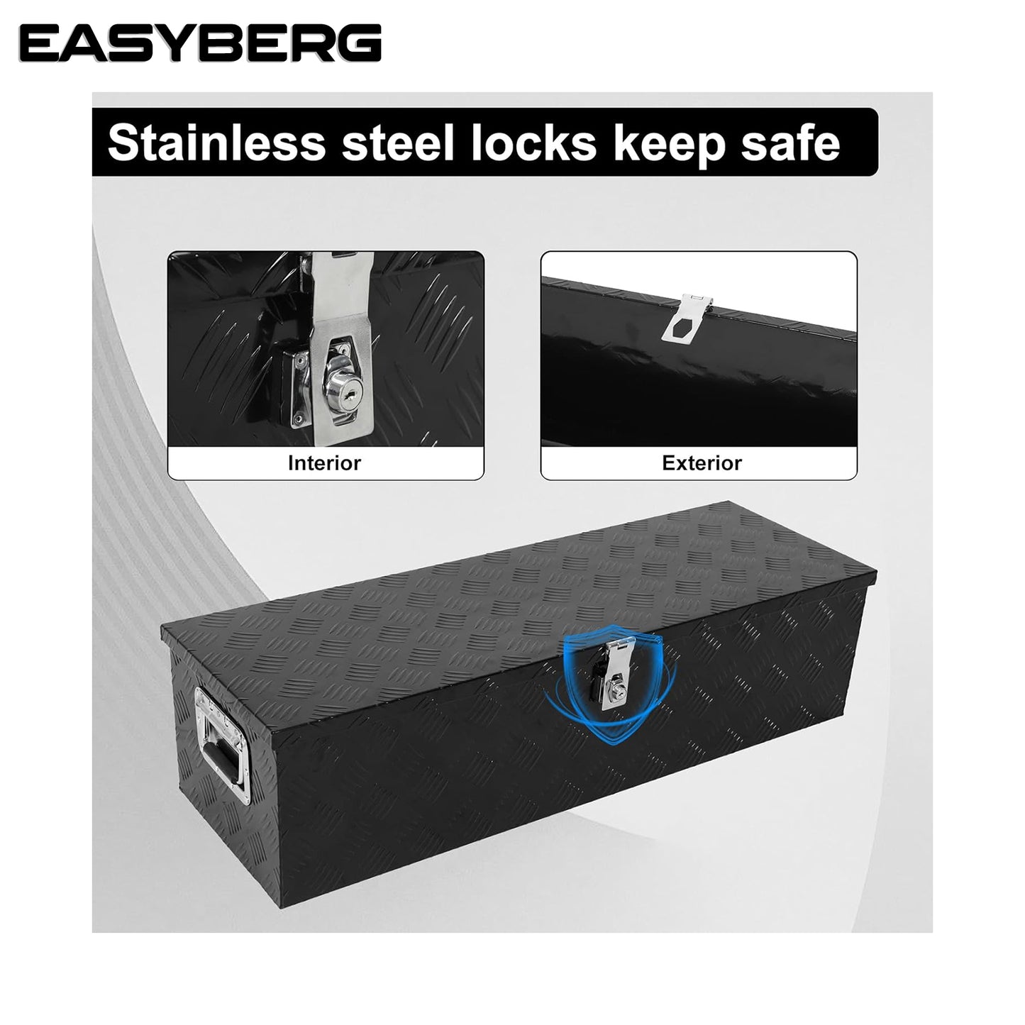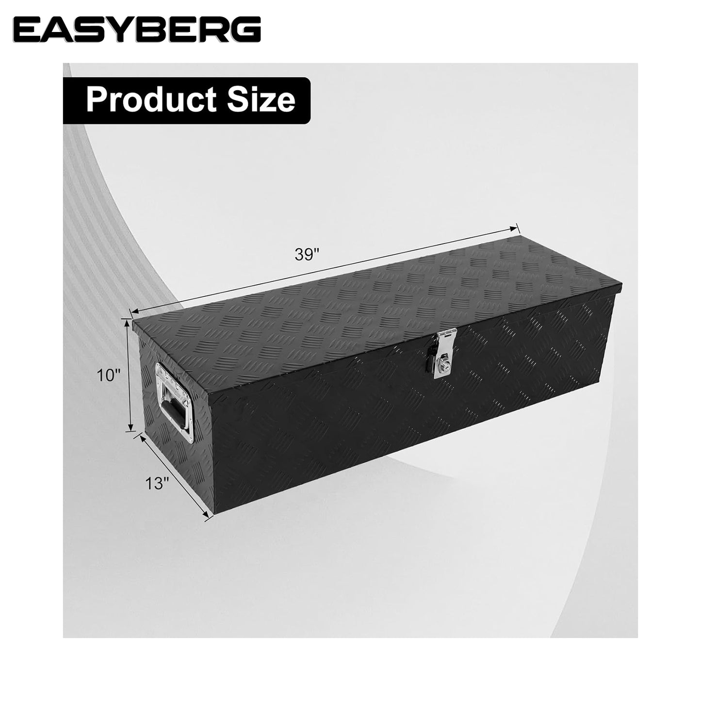 39 Inch Truck Tool Box Aluminum Stripes Truck Bed Tool box for Truck,Pickup,RV,Trailer,Waterproof Storage Organizer with Side-Handles,Lock and Keys-Black