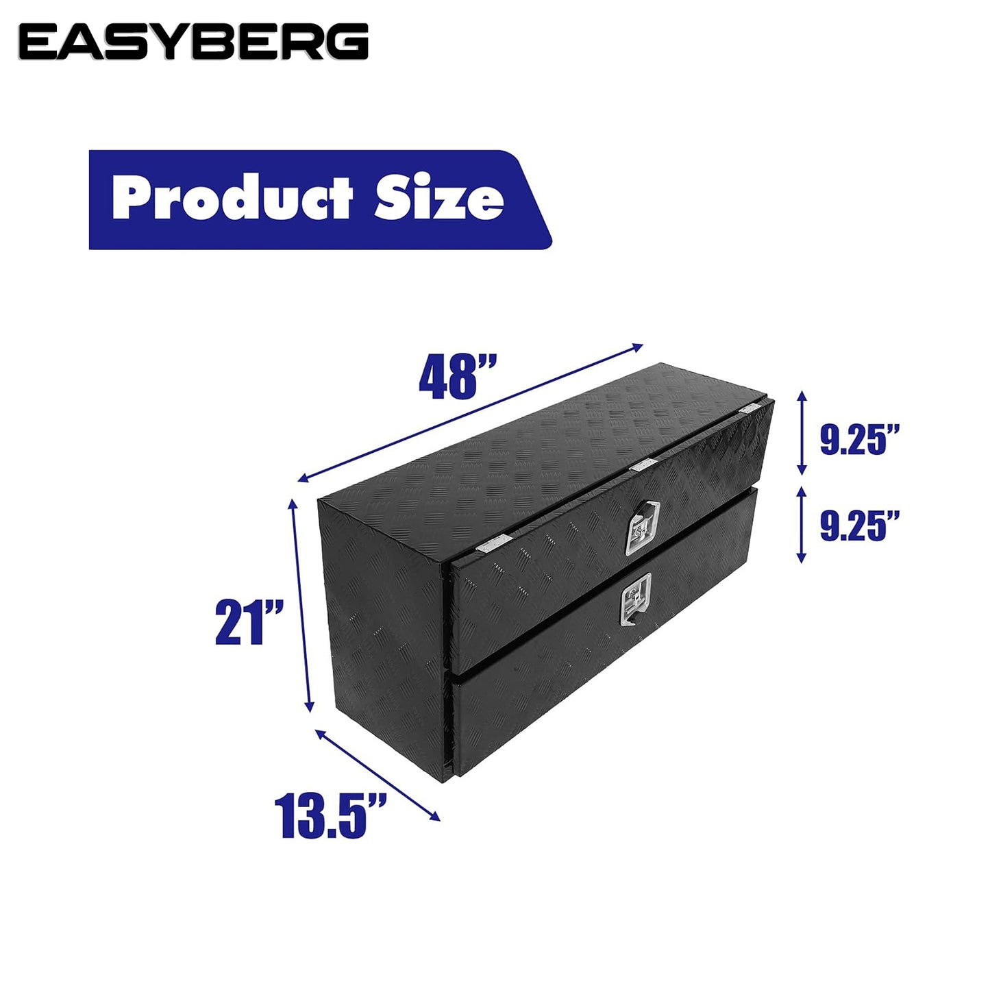 Aluminum Truck Tool Box w/Two Door,5 Bar Tread Truck Storage box w/Lock For Organization,Multifunction Black 48"x21"x15" Truck Toolboxes, For Truck,Trailer,RVs,Toolroom,Garage.