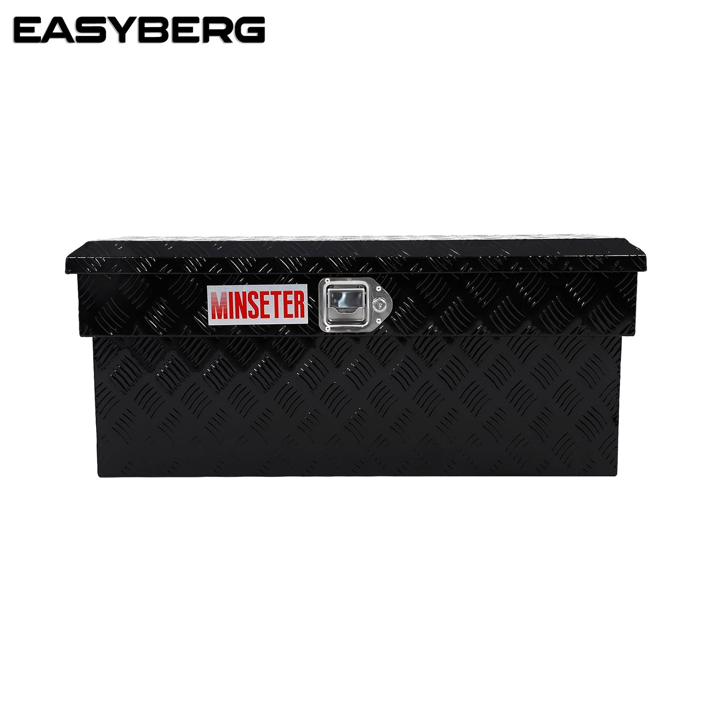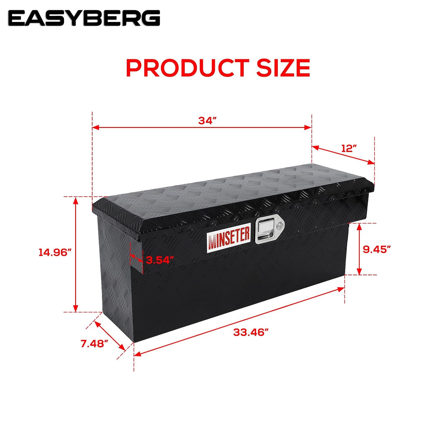 Heavy Duty Aluminum Stripes Plated Truck Tool Box,Truck Bed Tool Box with Lock and 2 Keys,34 x 12 x 15 inch L-shape Waterproof Storage Organizer for Truck, Trailer, Pickup,RV
