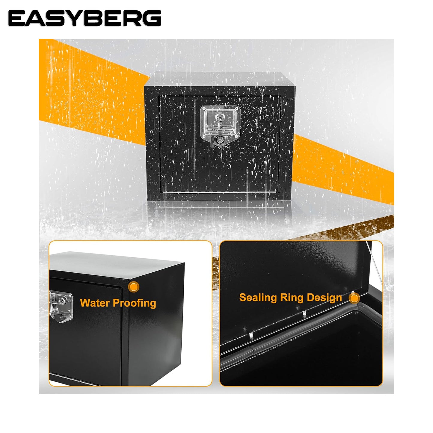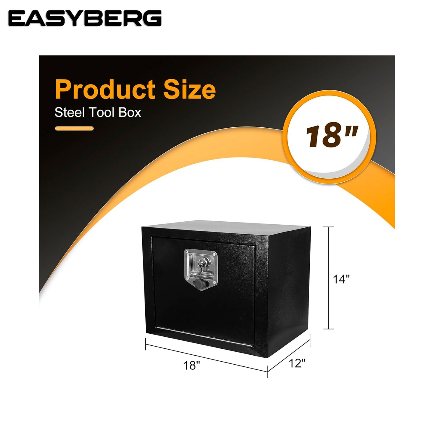 Underbody Truck Box Steel Storage Tool Box,18 x 12 x 14 Tool Chest Organizer w/Lock and Keys For Pickup,Truck Bed, RV, Trailer,Heavy Duty Waterproof Black box