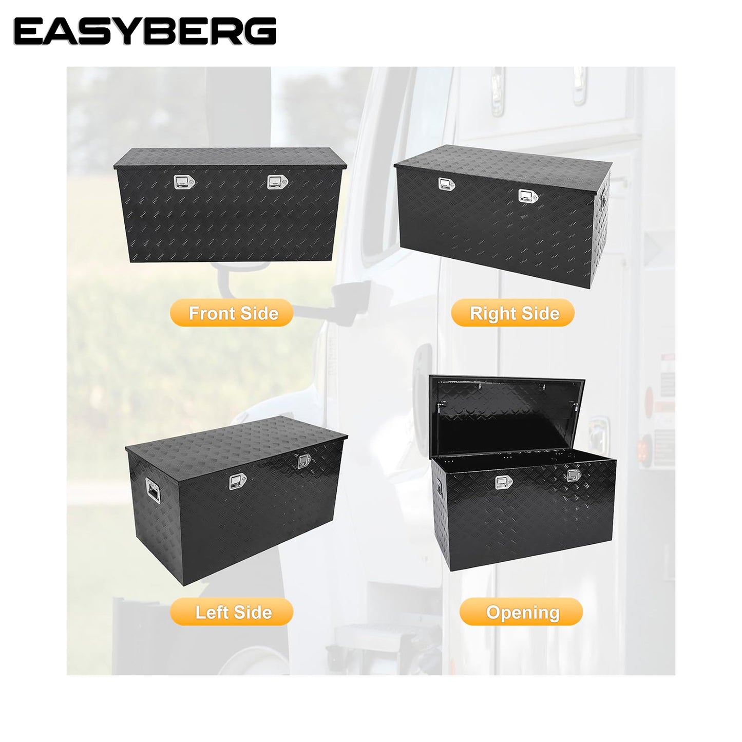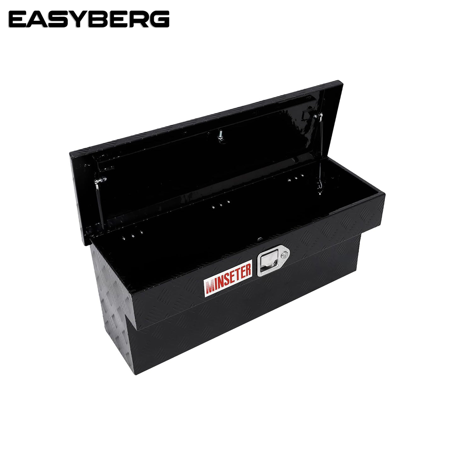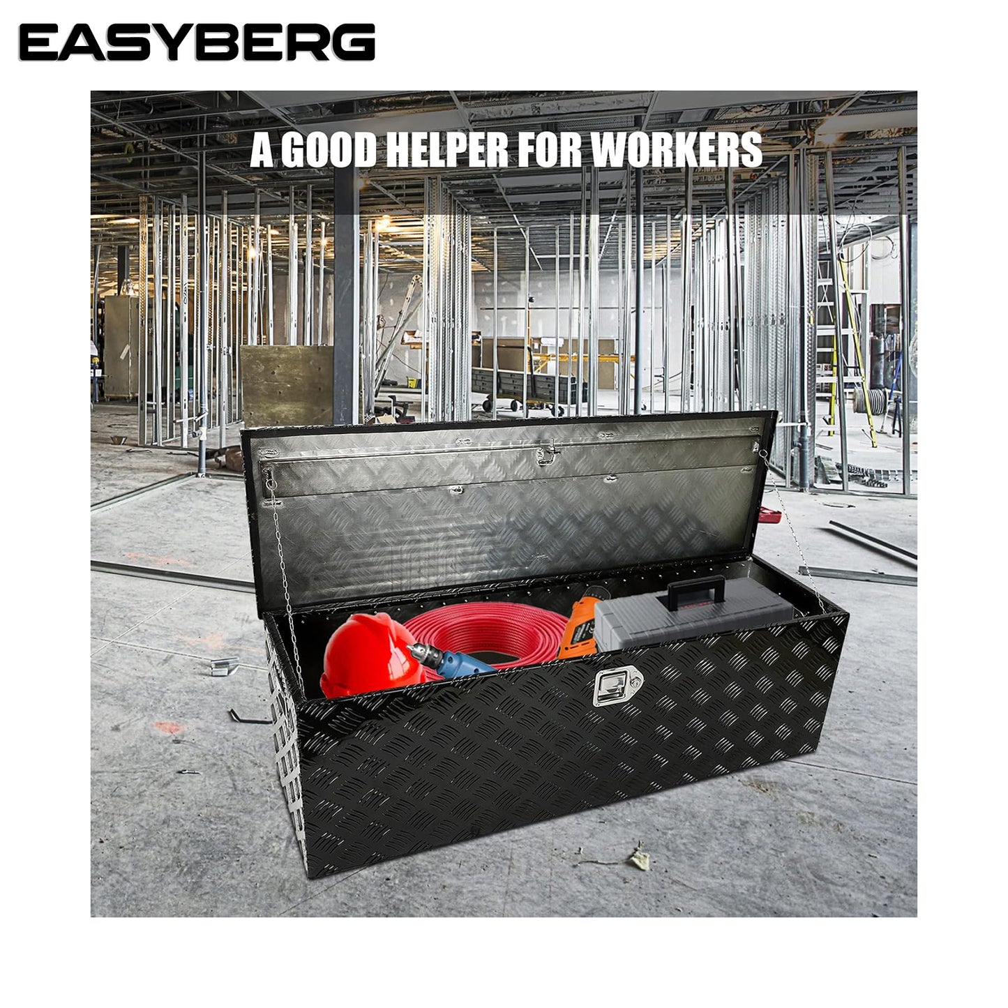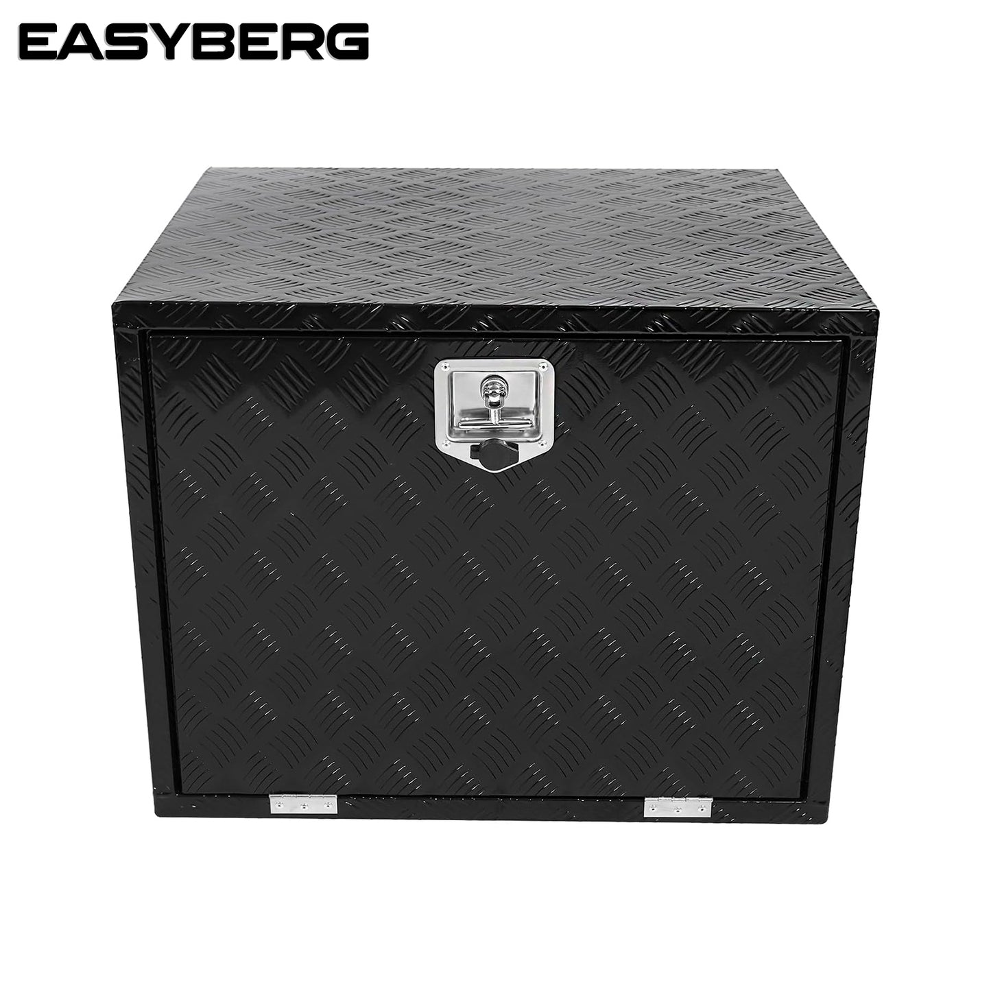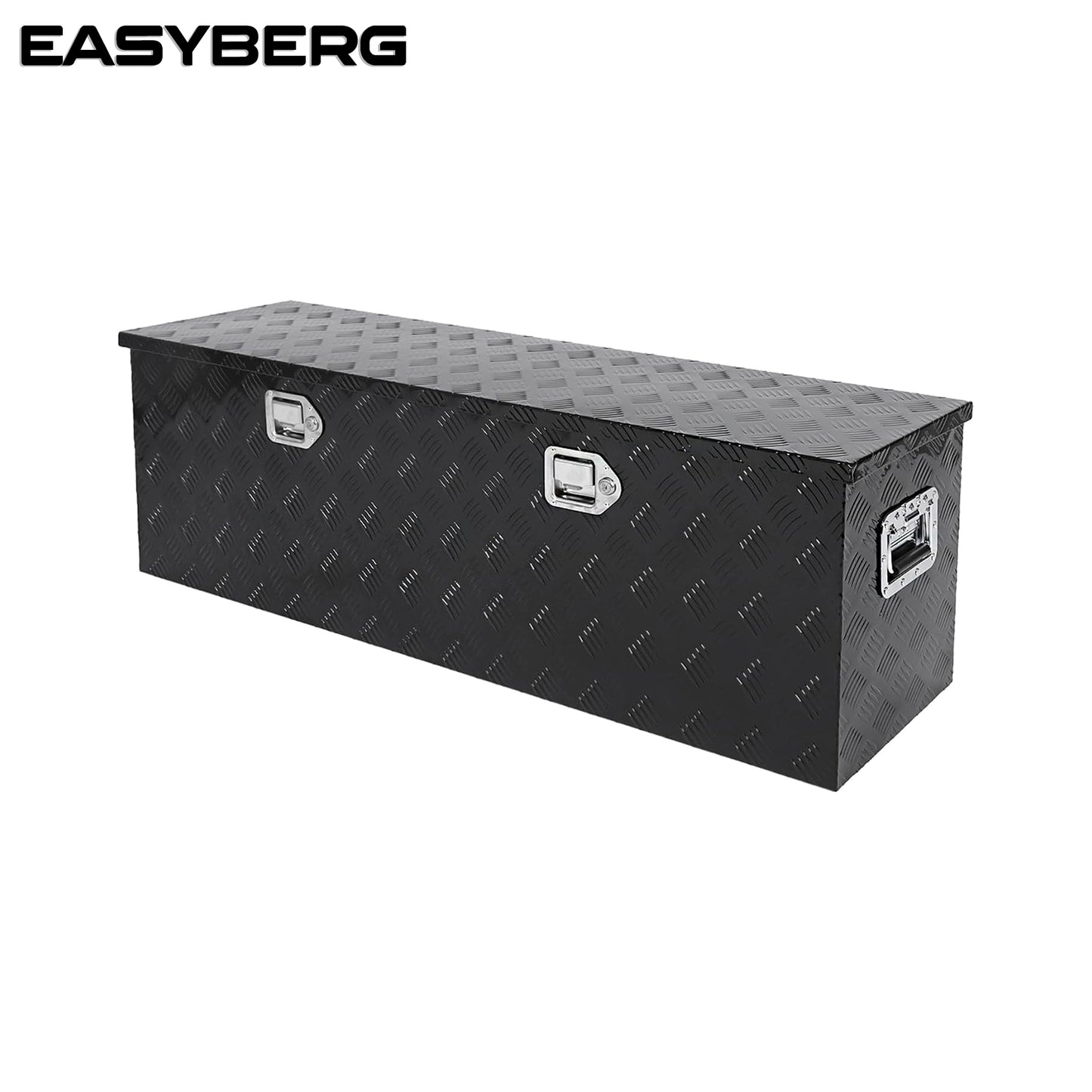 Black 48 Inch Truck Chest Tool box Heavy Duty Aluminum Stripes Plated Pick Up Truck Bed Box RV Trailer Toolbox Storage Waterproof with Side Handle and Lock Keys –48"x24"x24"
