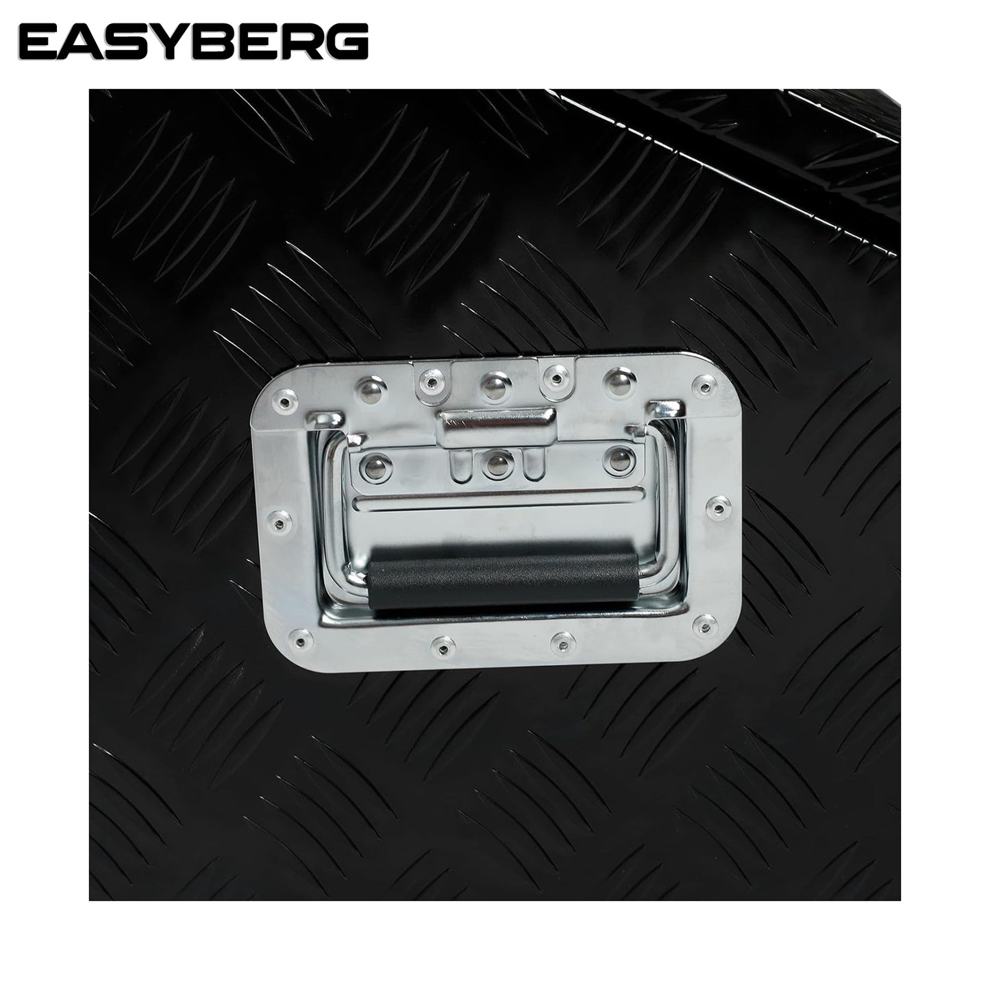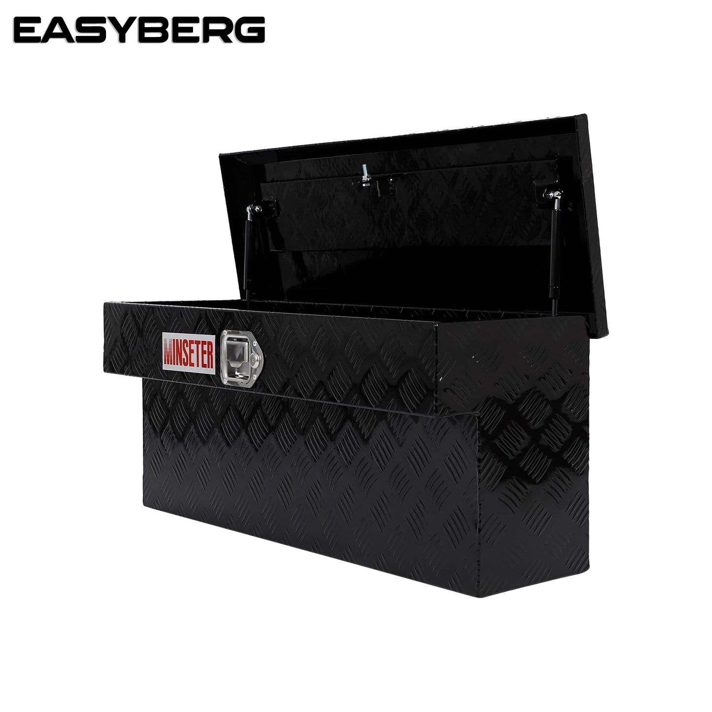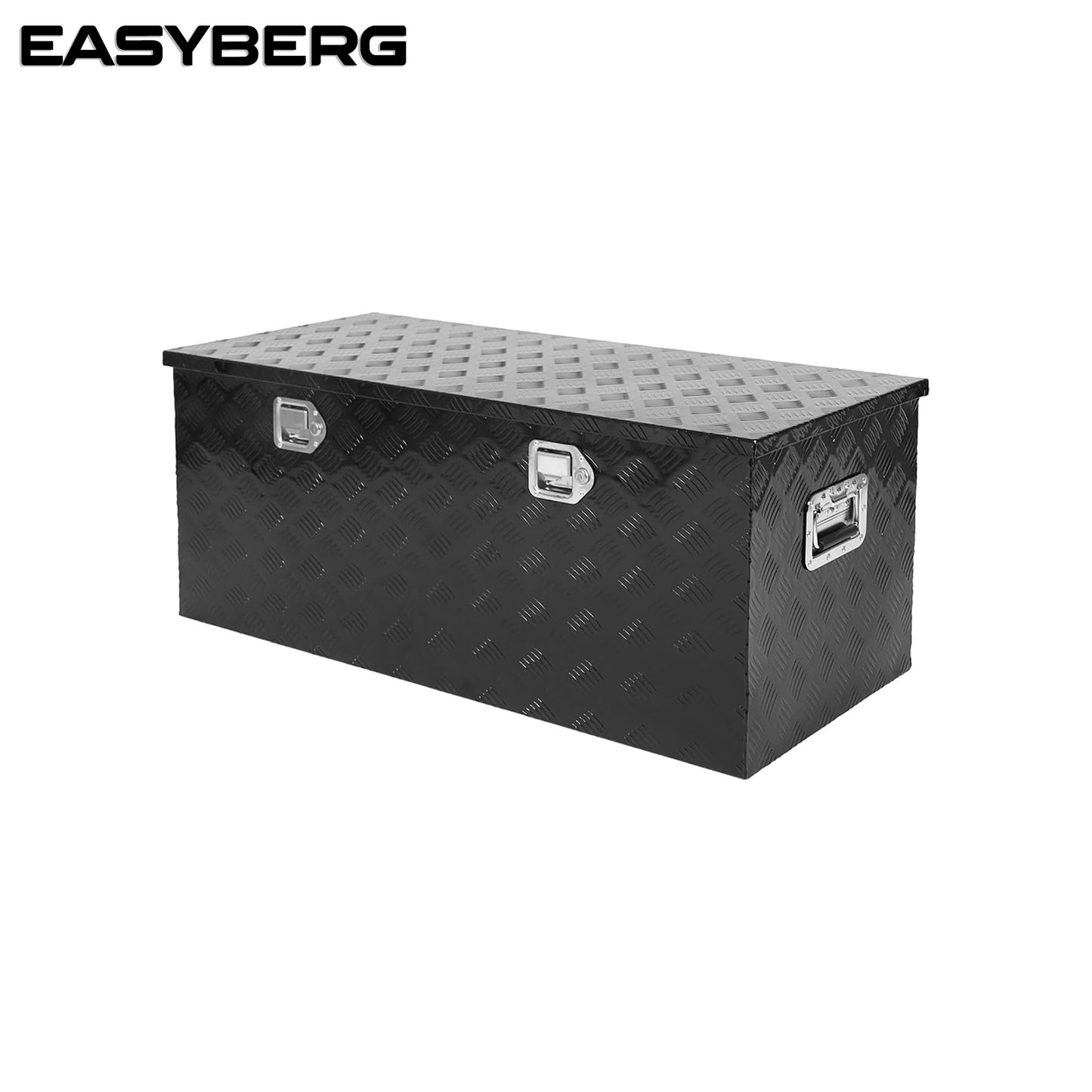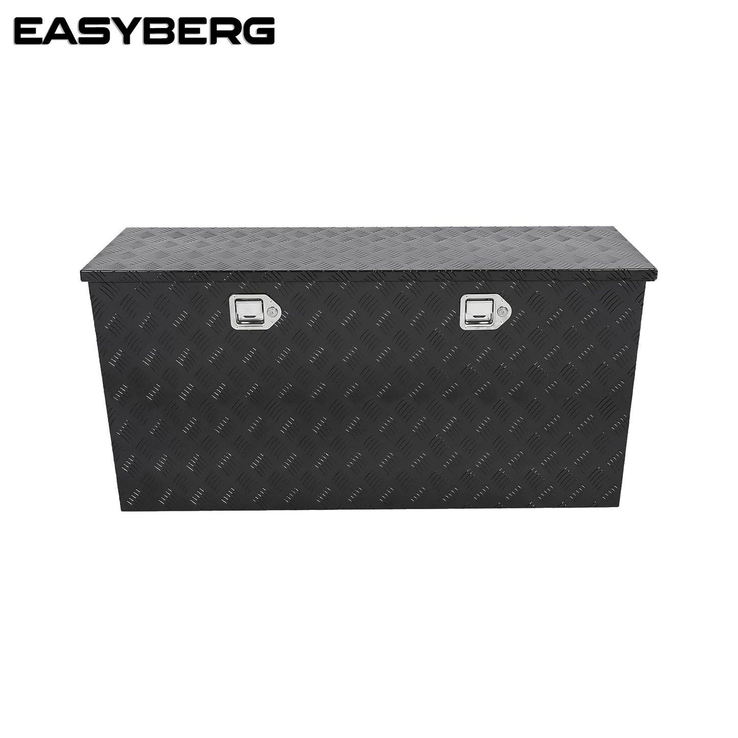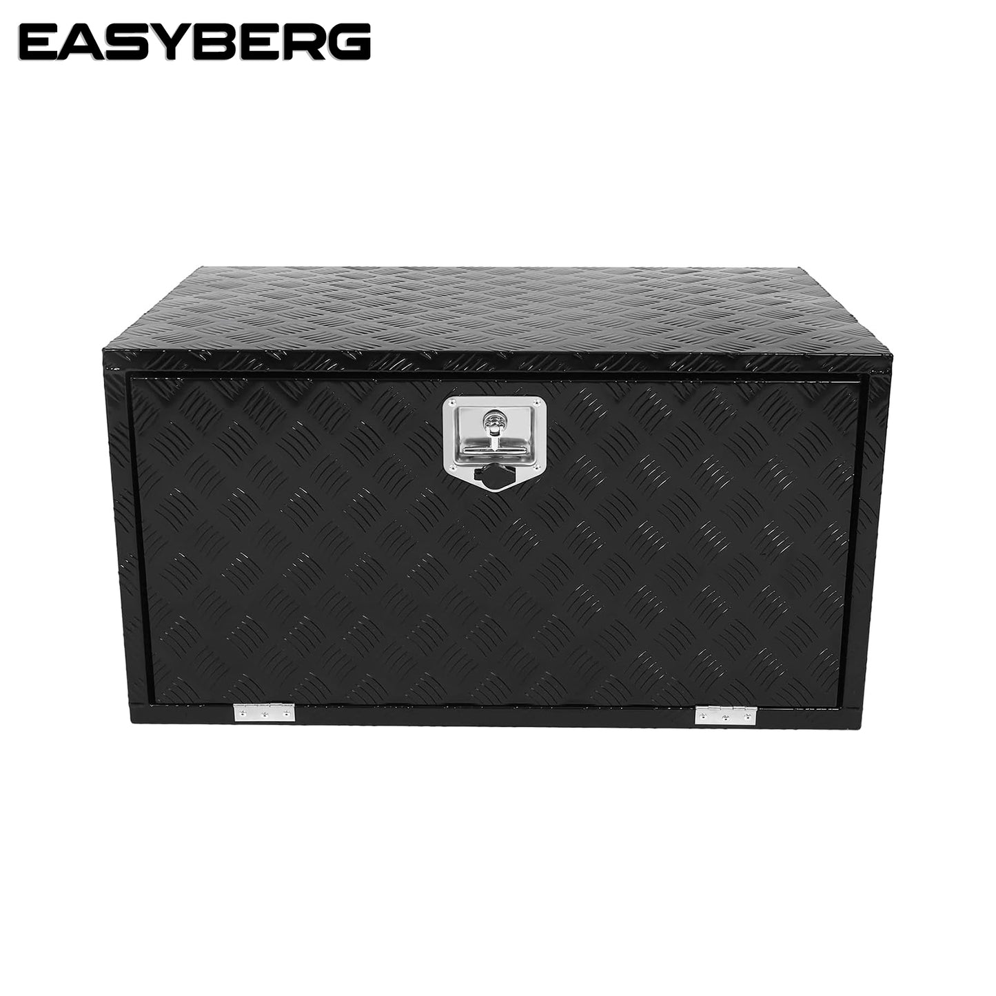 Black 48 Inch Truck Chest Tool box Heavy Duty Aluminum Stripes Plated Pick Up Truck Bed Box RV Trailer Toolbox Storage Waterproof with Side Handle and Lock Keys –48"x24"x24"