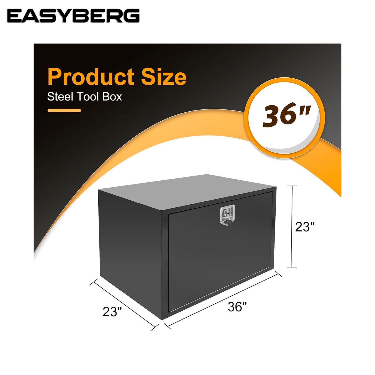 Underbody Truck Box Steel Storage Tool Box,36" L x 23" W x 23" H Tool Chest Organizer w/Lock and Keys For Pickup,Truck Bed, RV, Trailer,Heavy Duty Waterproof Blac box