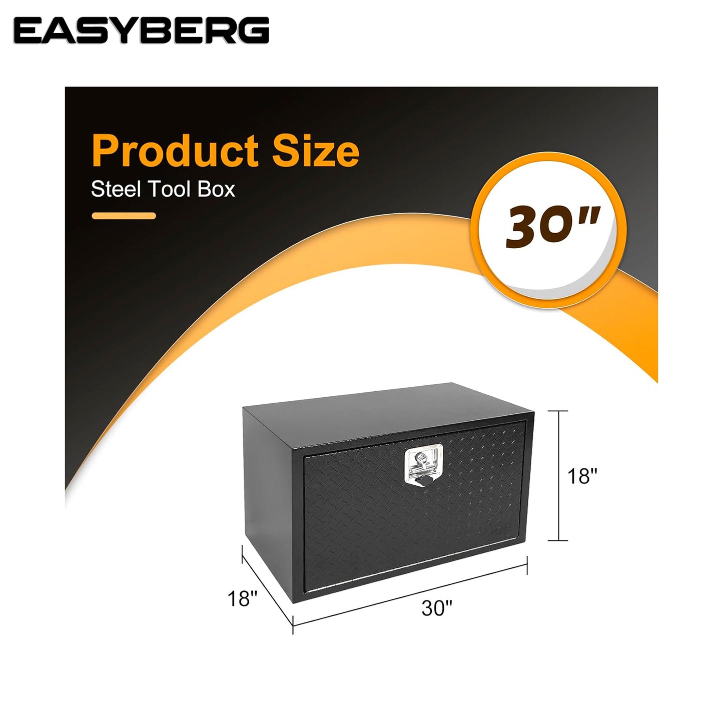 Underbody Truck Tool Box Steel Storage Box,30 x 18 x 18 inch Tool Chest Organizer Box with Aluminum Door For Pickup,Truck Bed, RV, Trailer,Heavy Duty Waterproof Black toolbox w/Lock & Keys