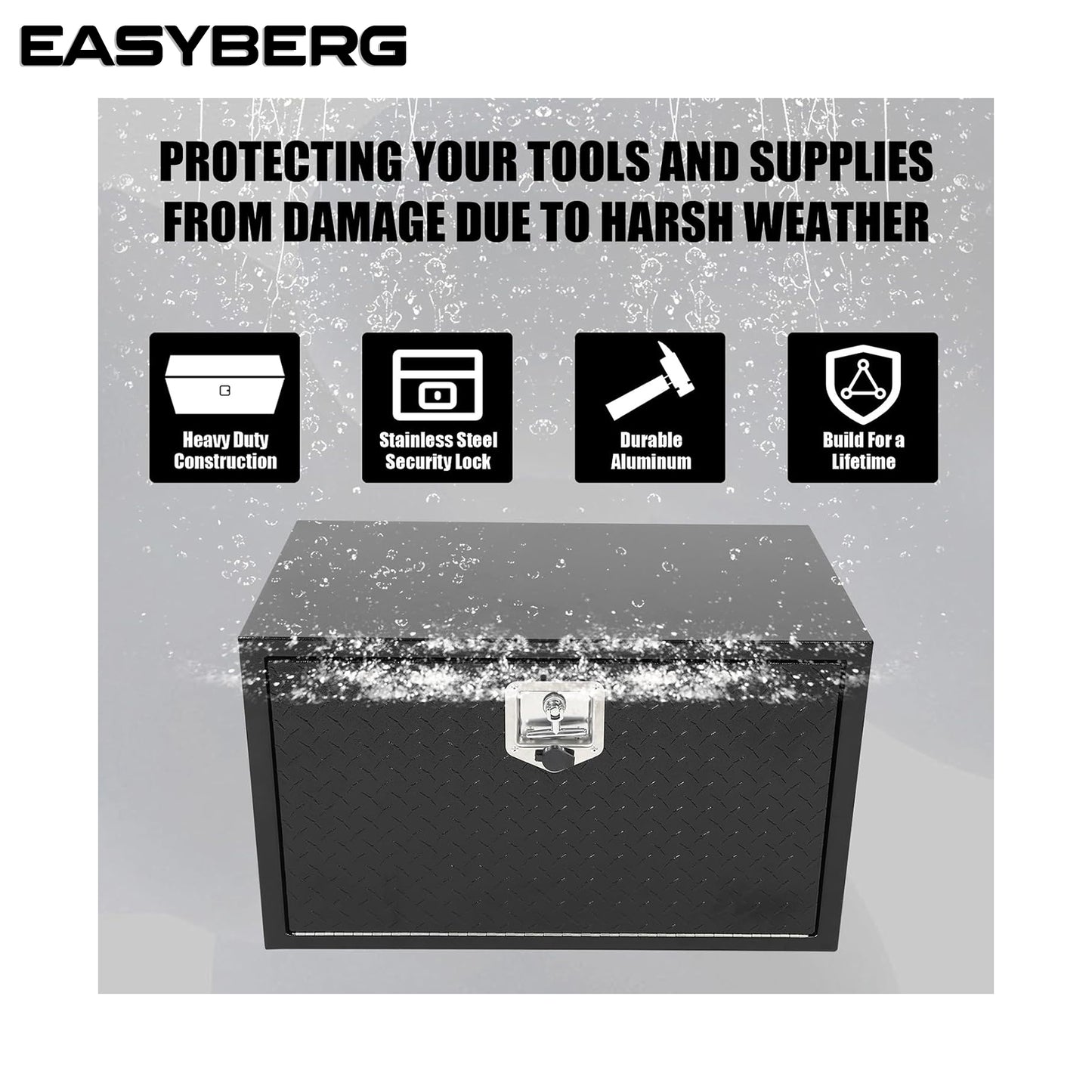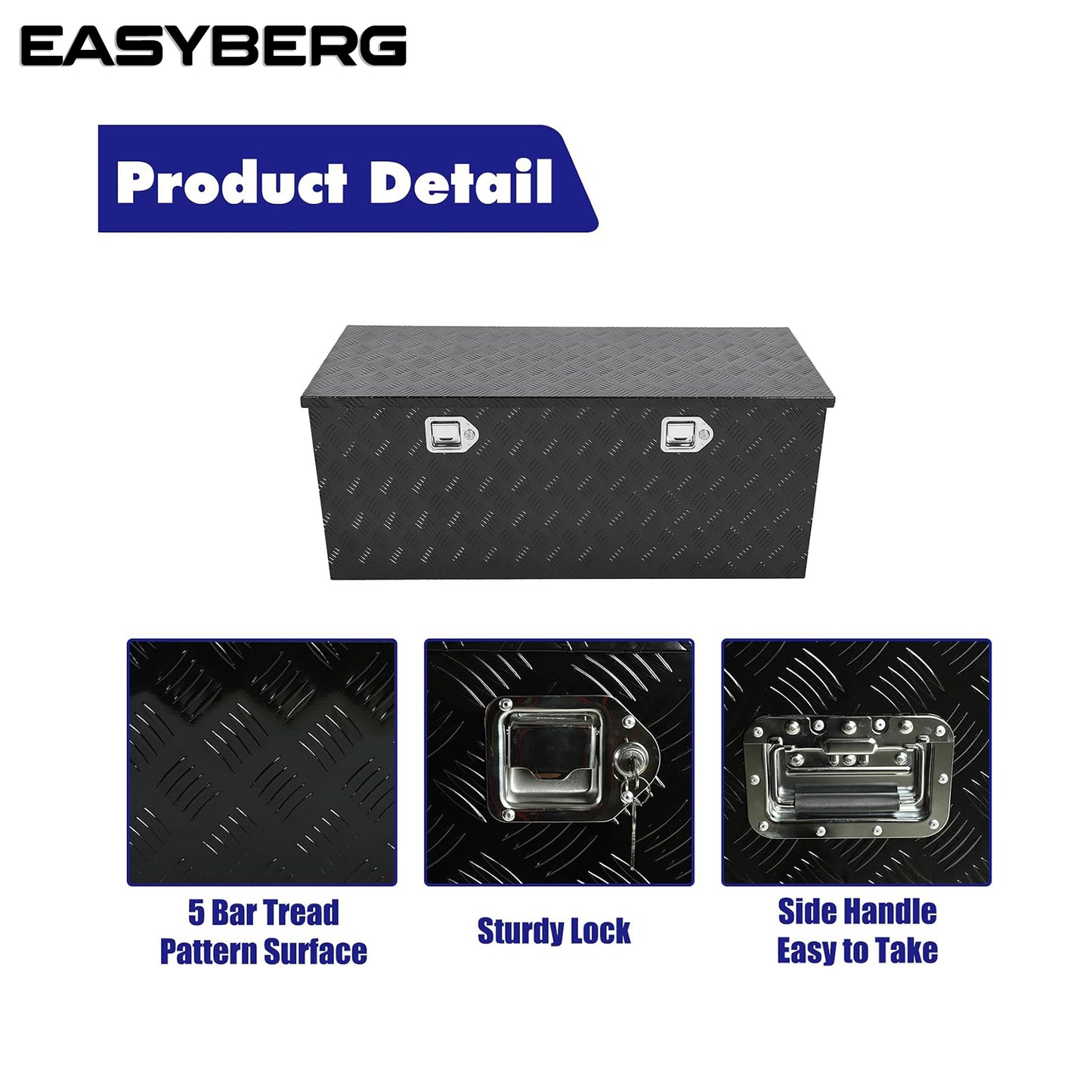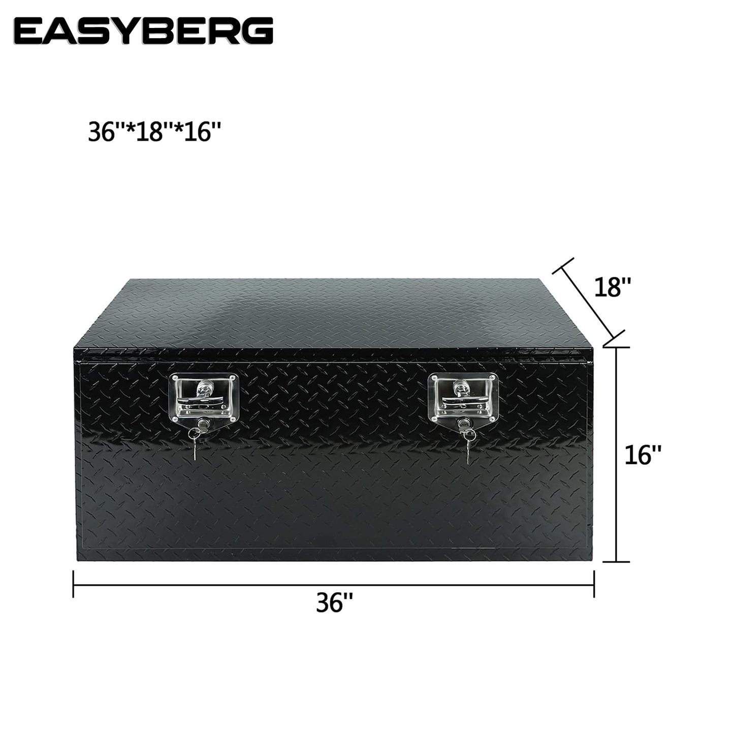 Truck Bed Tool Box Truck Trailer Underbody Storage+Locks With T-Handle Latch Key,36X18X16 Inch Heavy Duty Black Aluminum,Diamond Plate Truck Bed RV Trailer Toolbox