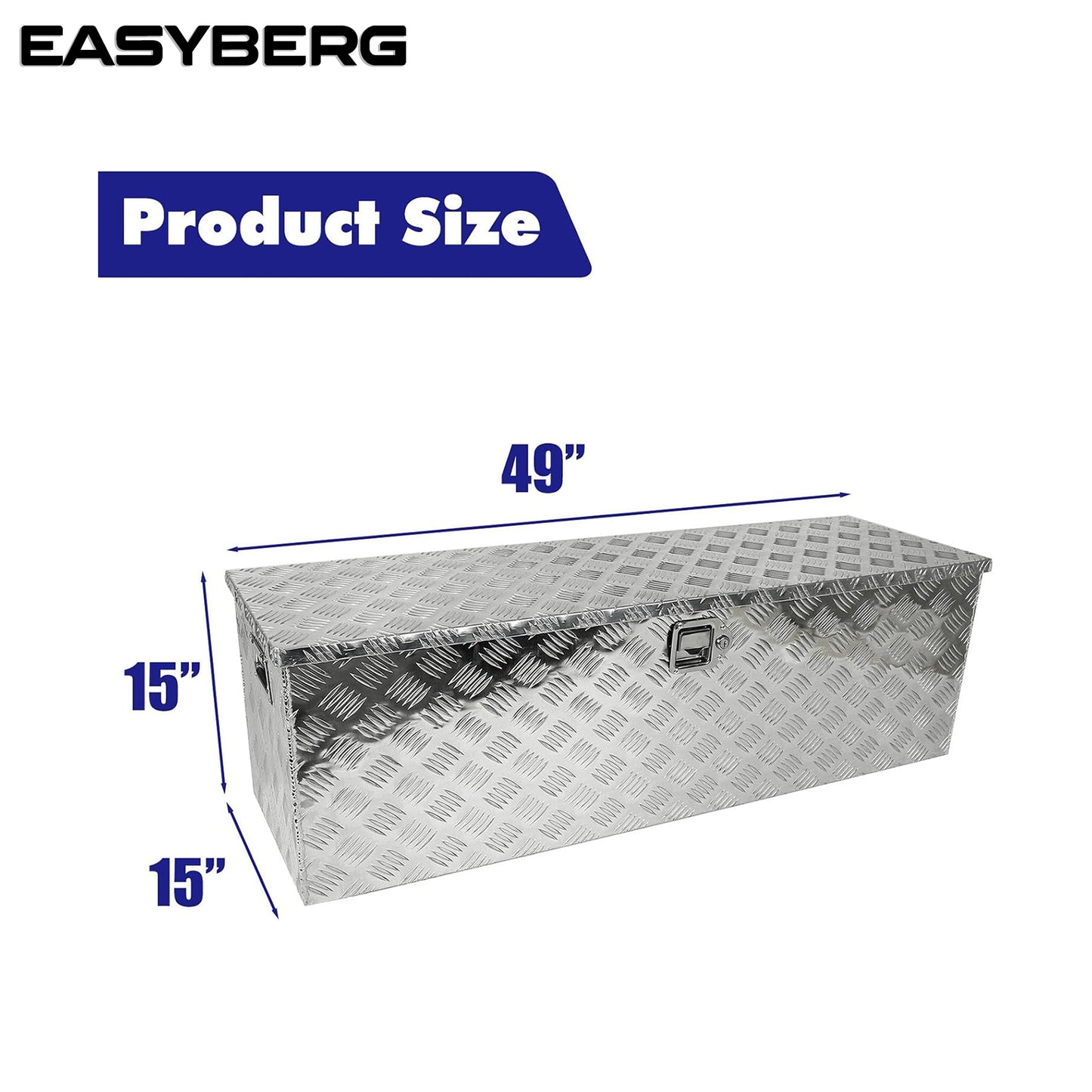 49" Heavy Duty Aluminum Stripes Plated Tool Box Pick Up Truck Bed RV Trailer Toolbox Waterproof Square Storage Organizer with Side Handle, Lock with Keys -49"x 15"x 15",Black