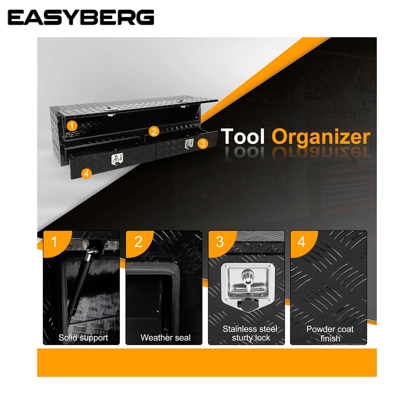 36 Inch Underbody Truck Tool Box Aluminum Storage Tool Box,36" x 20" x 20" Toolbox Organizer w/Lock and Keys For Pickup,Truck Bed, RV, Trailer,Heavy Duty Waterproof Black box