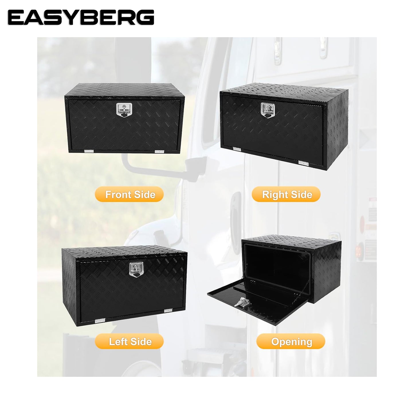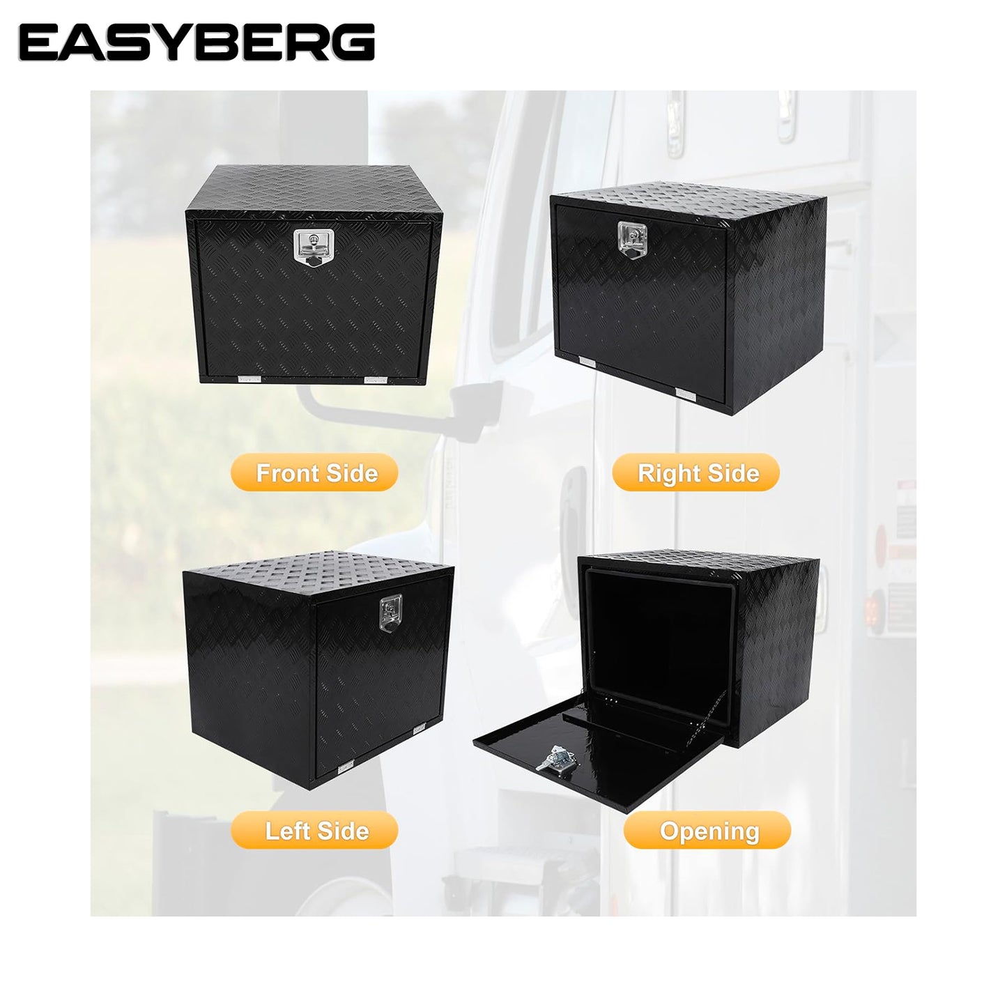 24 Inch Underbody Truck Tool Box Aluminum Storage Tool Box,24" x 24" x 24" Toolbox Organizer w/Lock and Keys For Pickup,Truck Bed, RV, Trailer,Heavy Duty Waterproof Black box