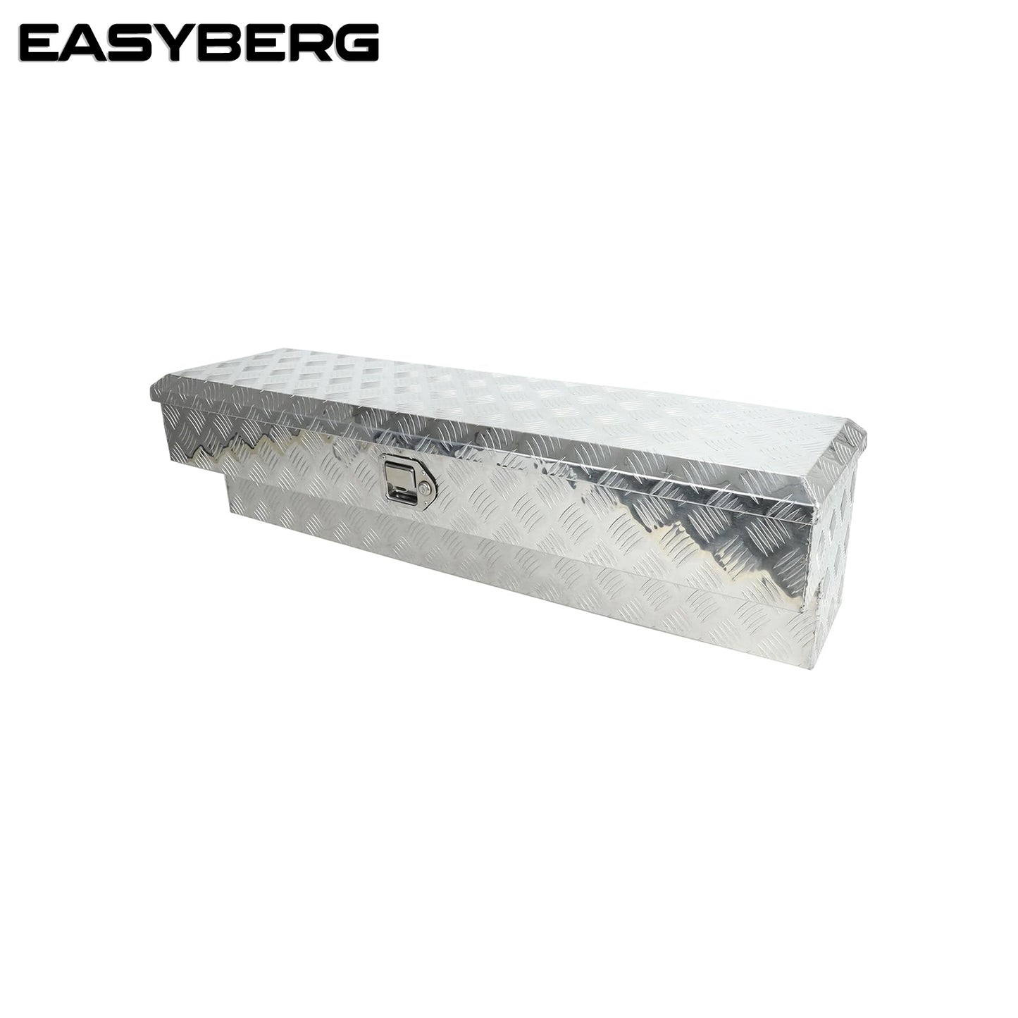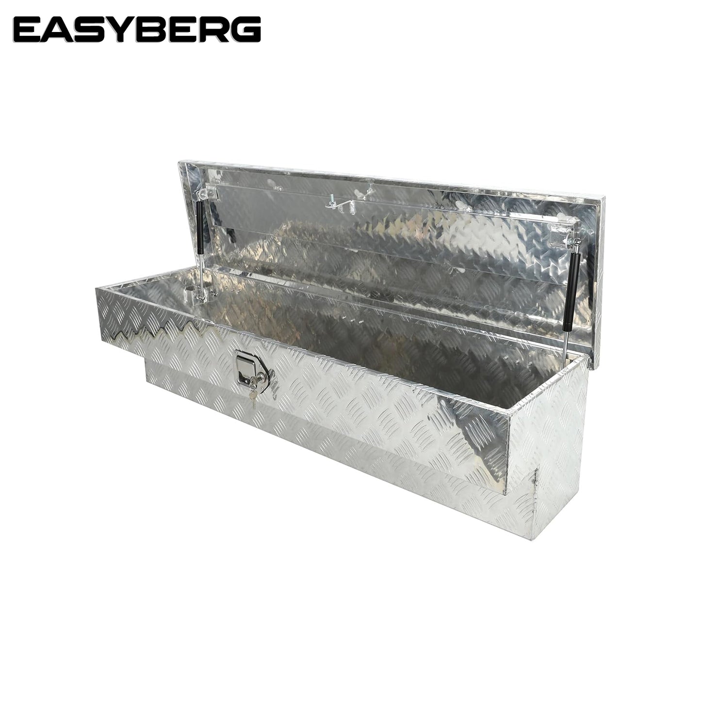 48"(L) x 15"(W) x 15"(H) Pickup Truck Trunk Bed Tool Box Trailer Storage Chrome Aluminum Lock Black Surface