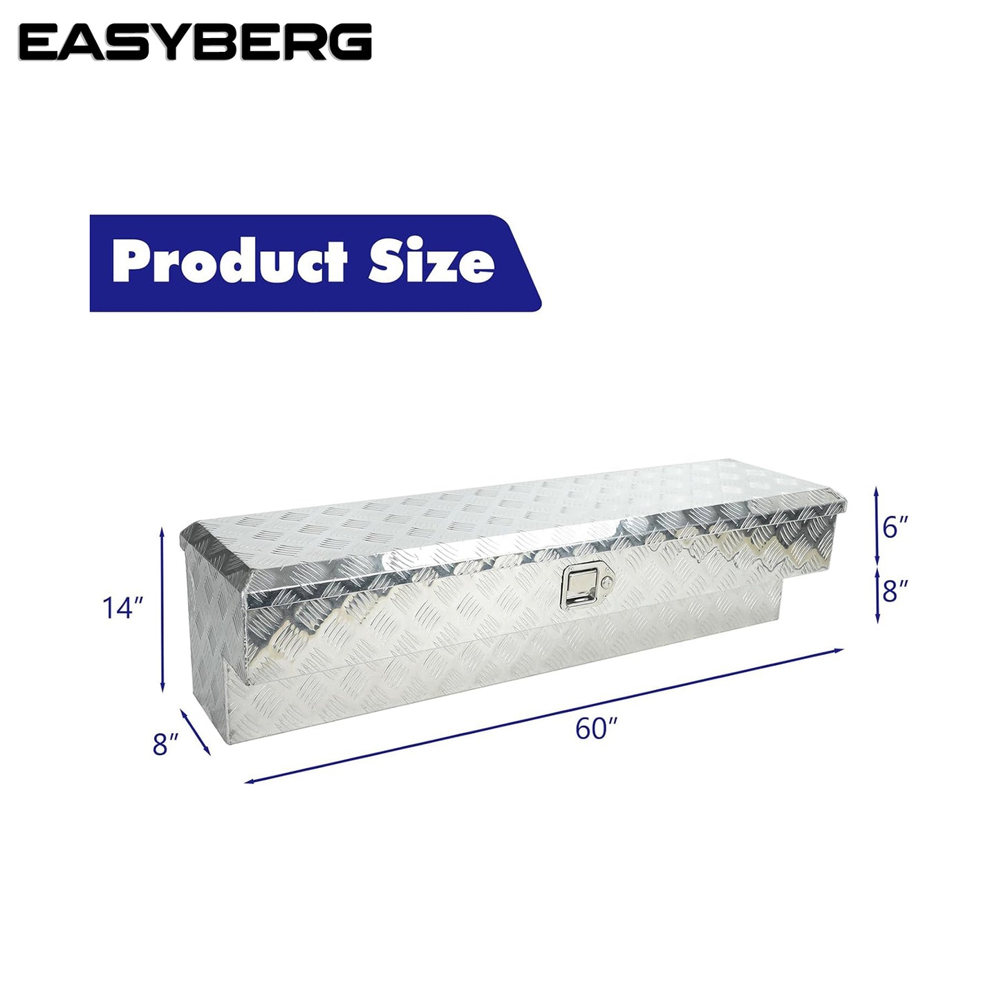 Side Mount Truck Tool Box 60"X8"X14" Aluminum Pickup Truck Bed Tool Box Trailer Storage with Lock Key 5 Bar Tread-Silver