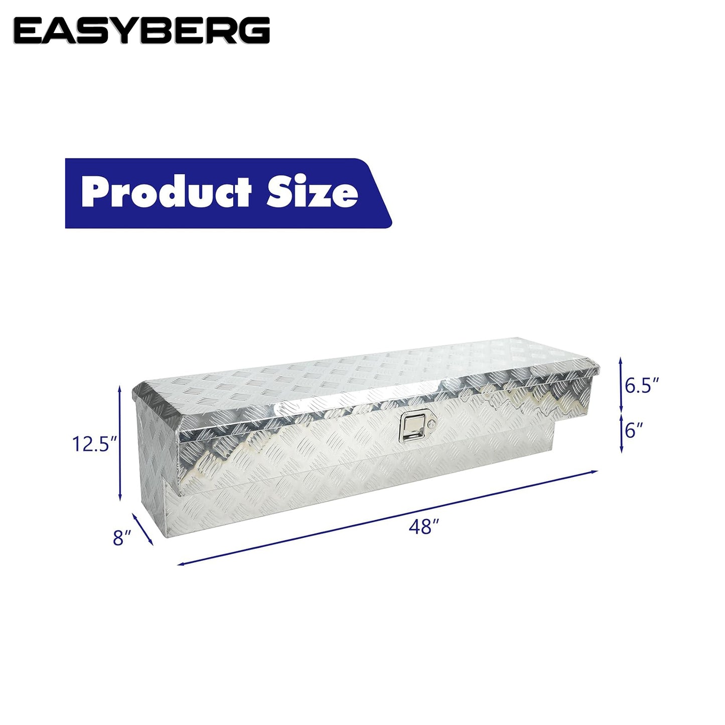 48 Inch Side Mount Truck Box Aluminum Storage Tool Box,48 x 8 x 12.5 inch Toolbox Organizer w/Lock and Keys For Pickup,Truck Bed, RV,Heavy Duty Waterproof job box - Black