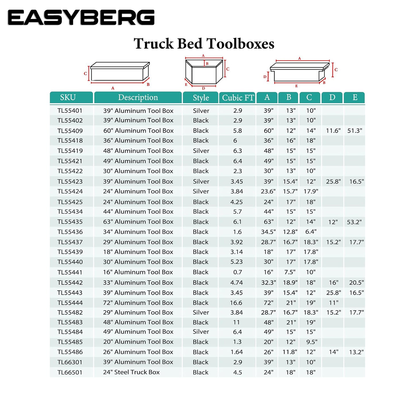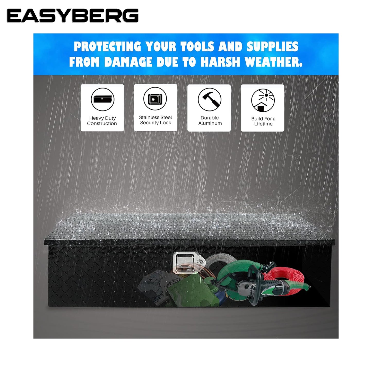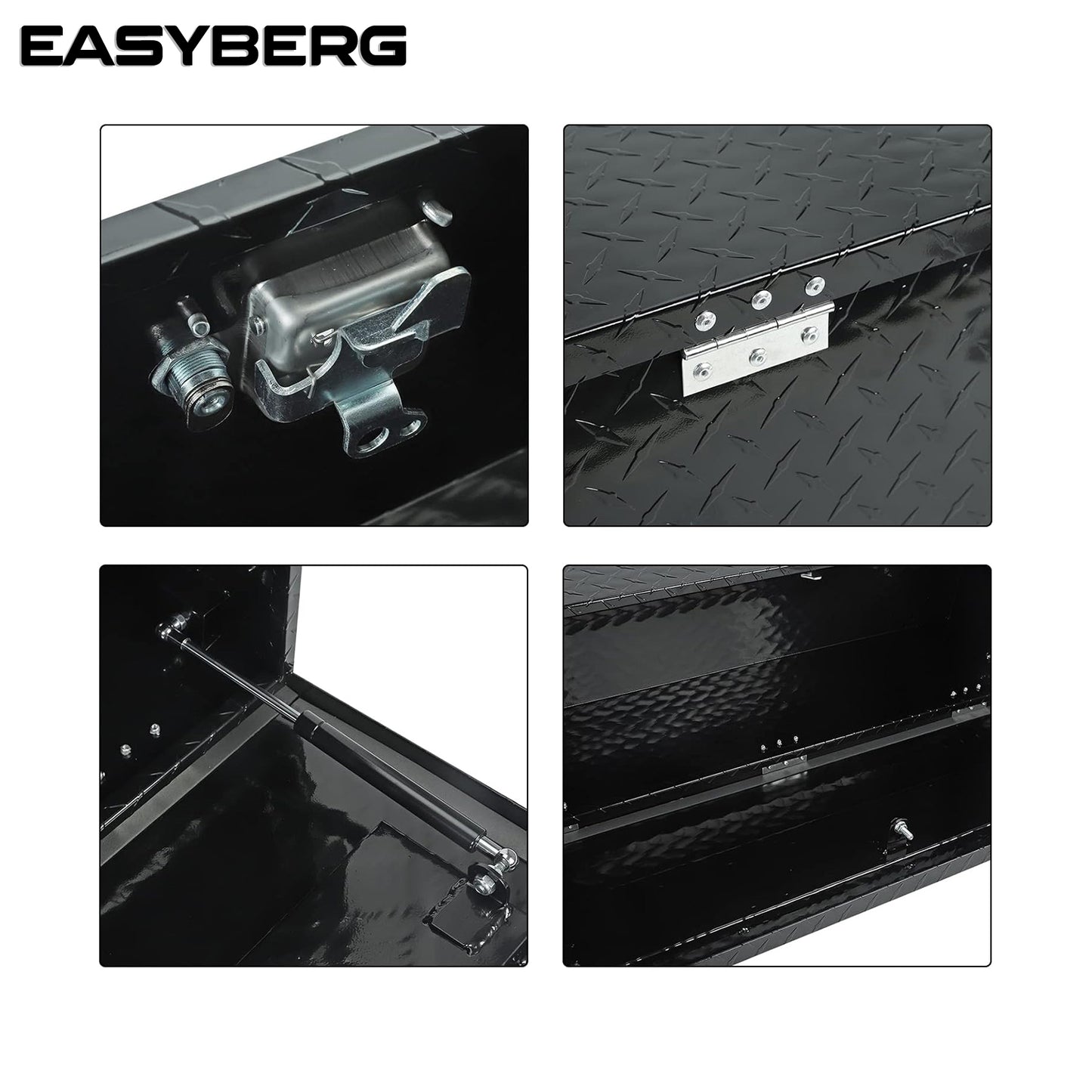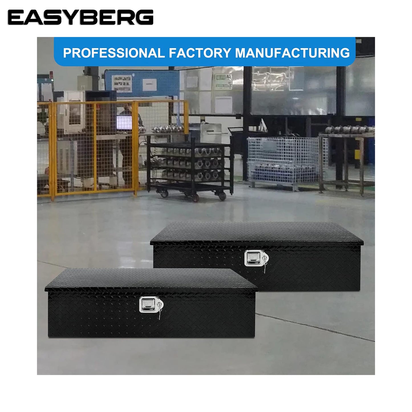 39" Heavy Duty Aluminum Diamond Plated Tool Box Pick Up Truck Bed RV Trailer Toolbox Storage Organizer with Side Handle, Lock and Keys - Black