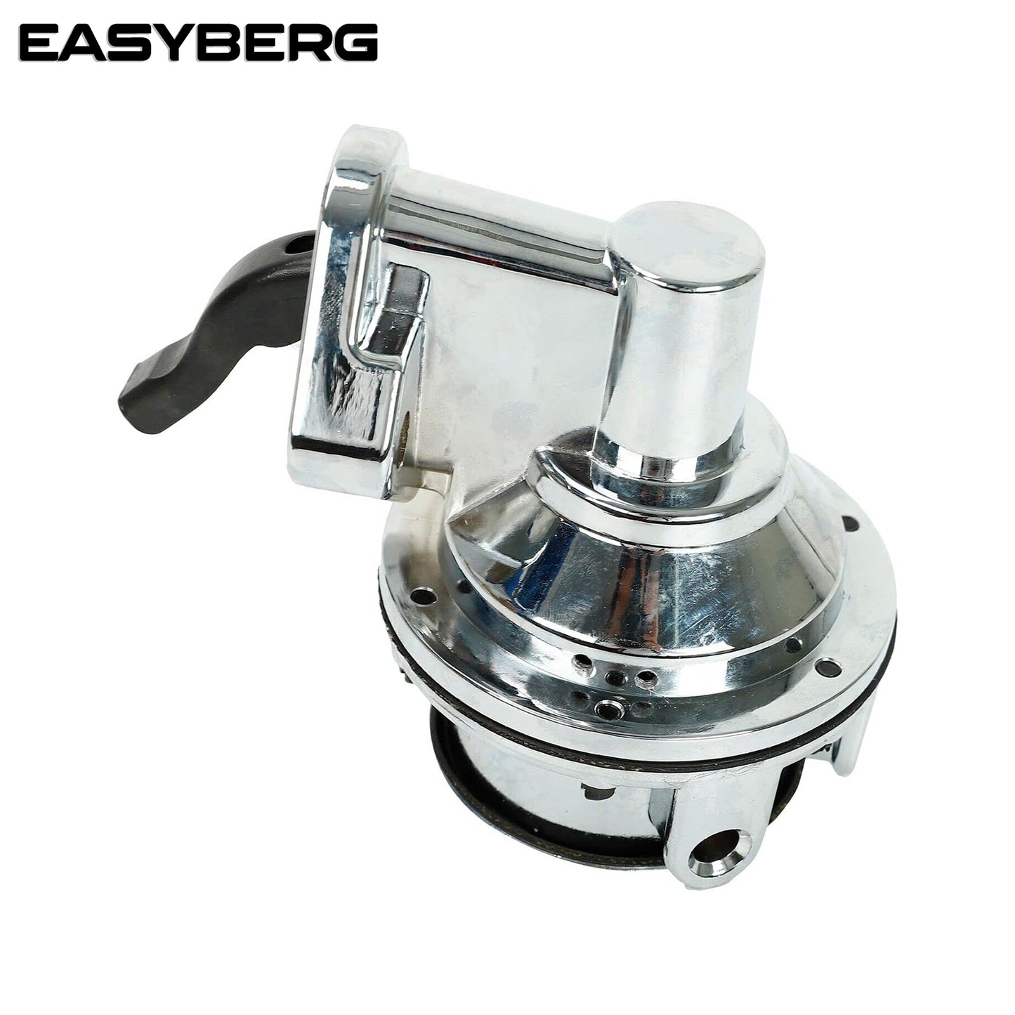 Chrome Mechanical Fuel Pump With Fittings Compatible For SBC Chevy 265 283 305 307 327 350 400 409