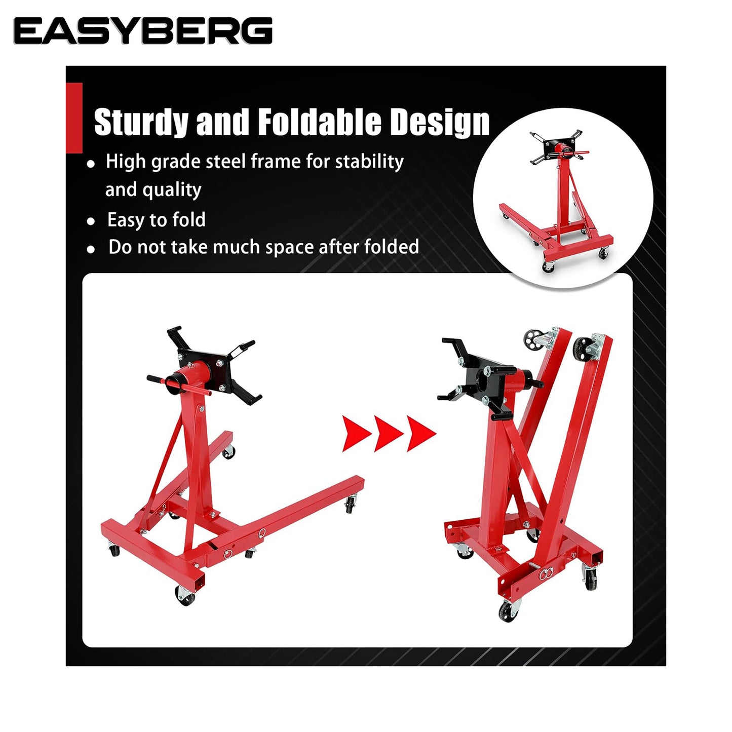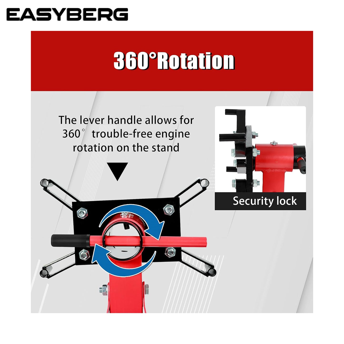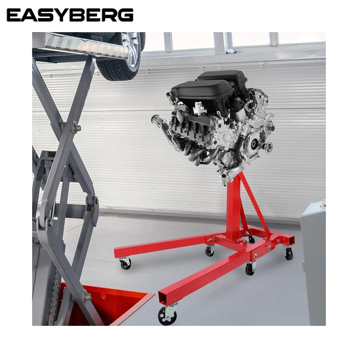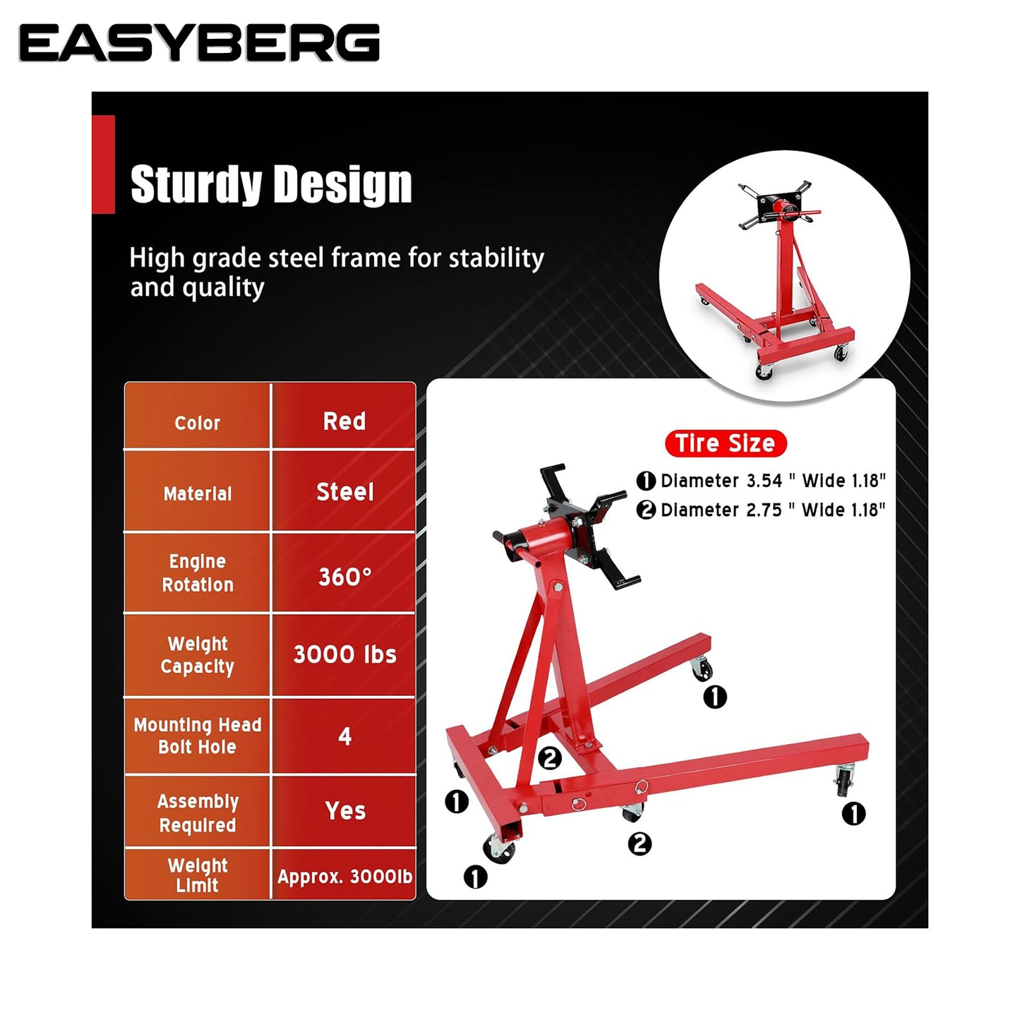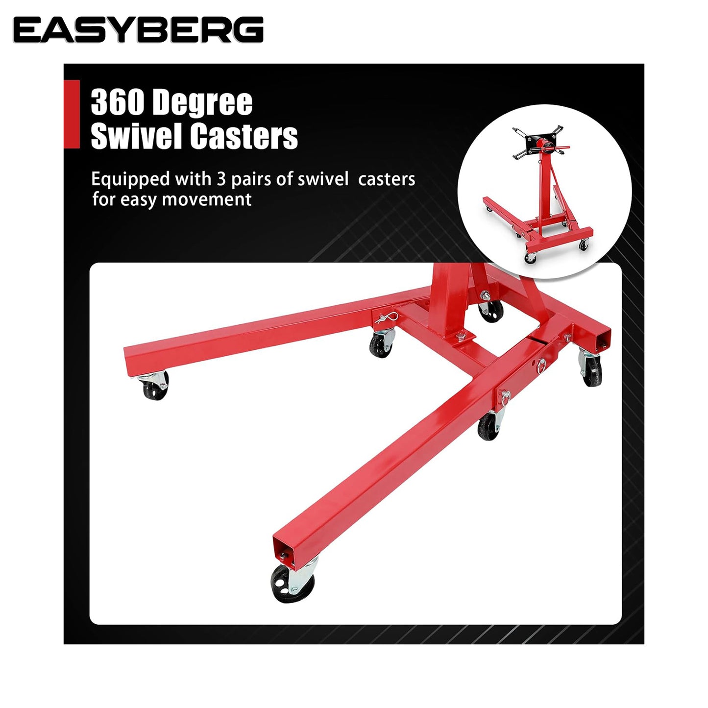 Engine Stand, 3000lbs Capacity Engine Motor Stand with 360 Degree Rotating Head, Heavy-Duty Foldable Engine Lift Stand with 6 Wheels, 4 Adjustable Arms, Red
