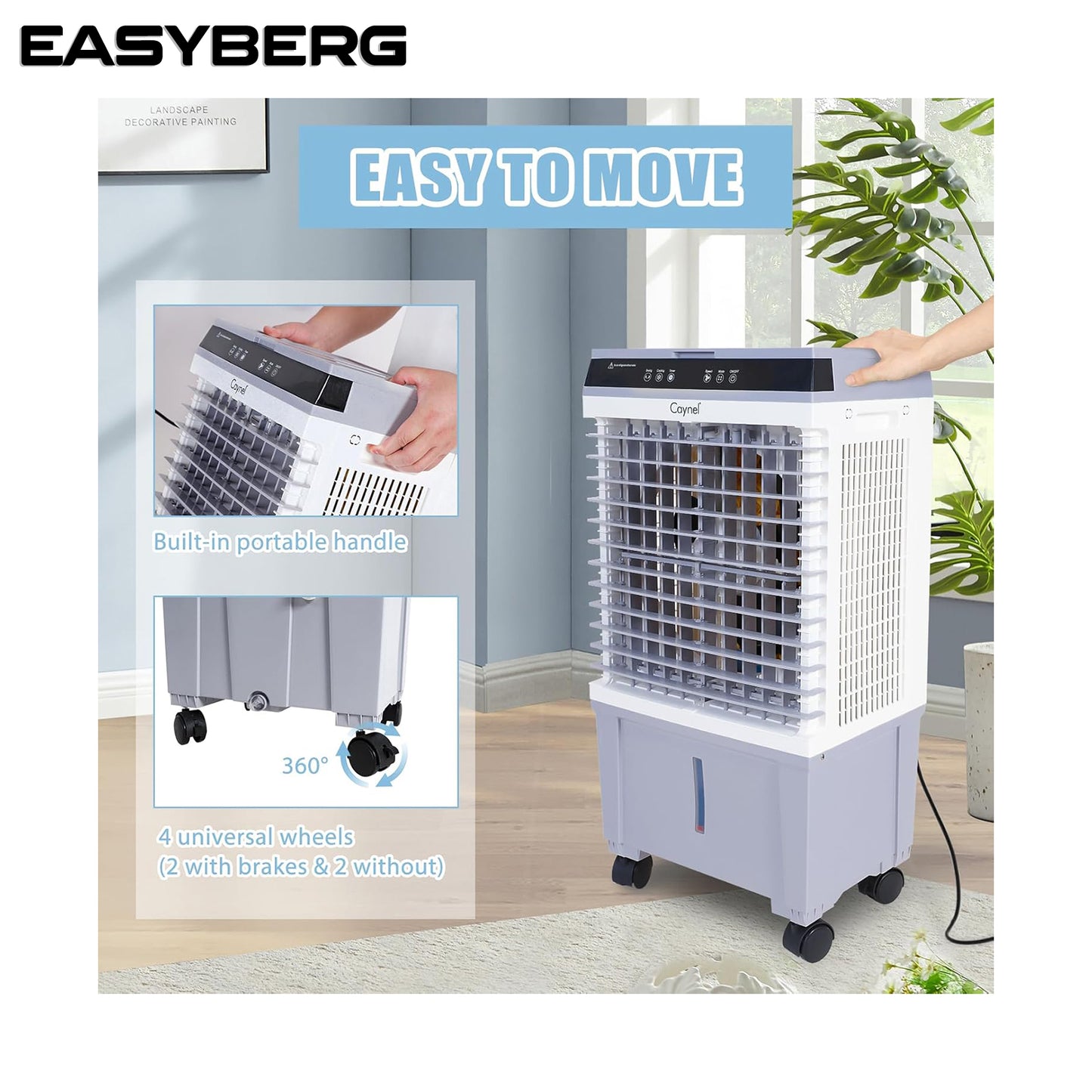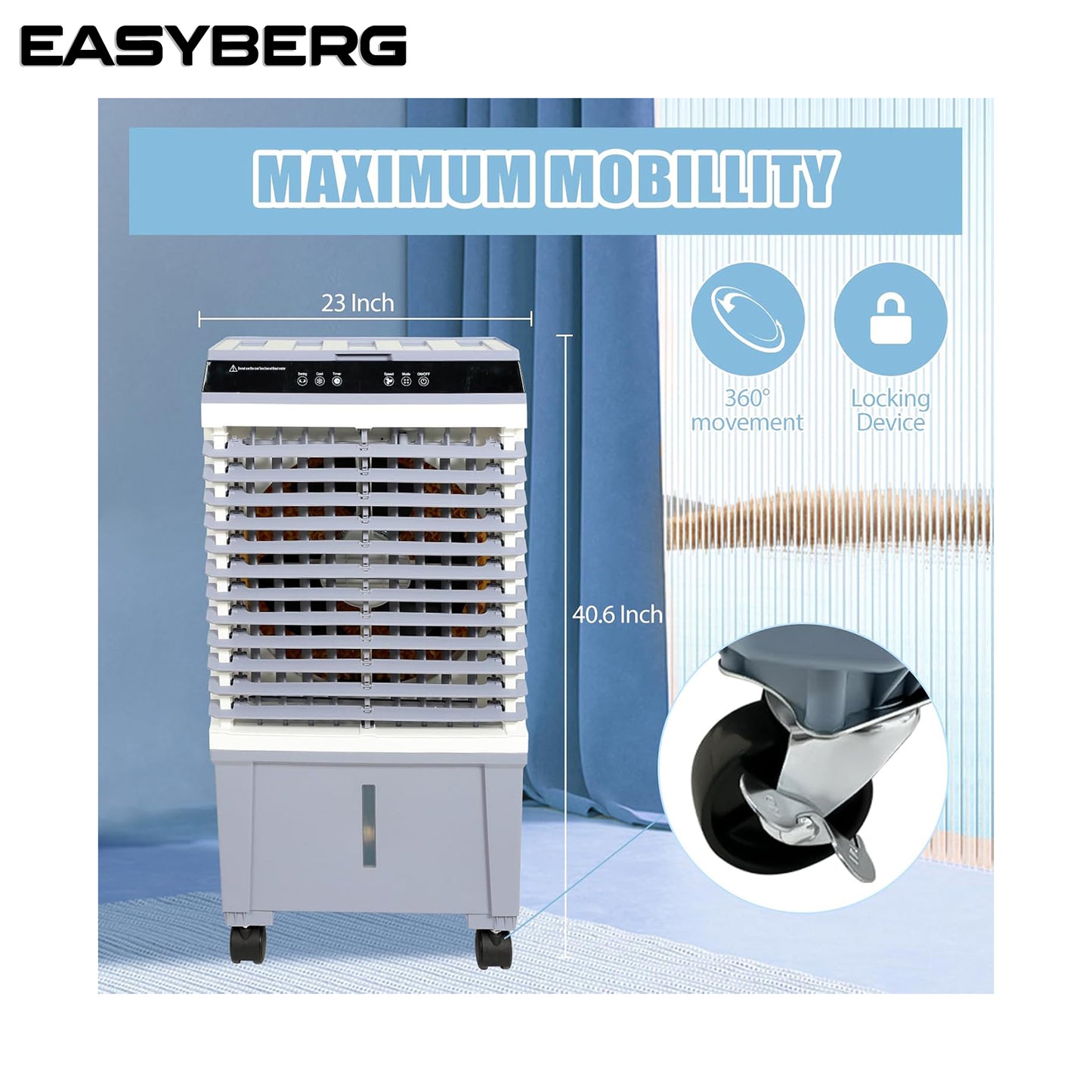 - 【Easy to use and move】 This cooler requires no assembly other than mounting casters. Additionally, the evaporative cooler is equipped with swivel casters on the bottom and handle grooves on the sides, making it easy to move and place it where you need it, even when the tank is full.