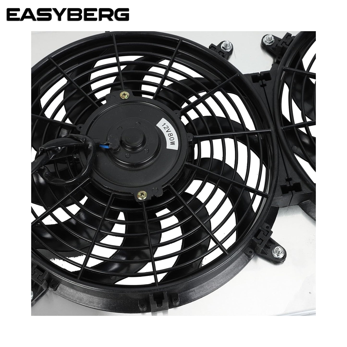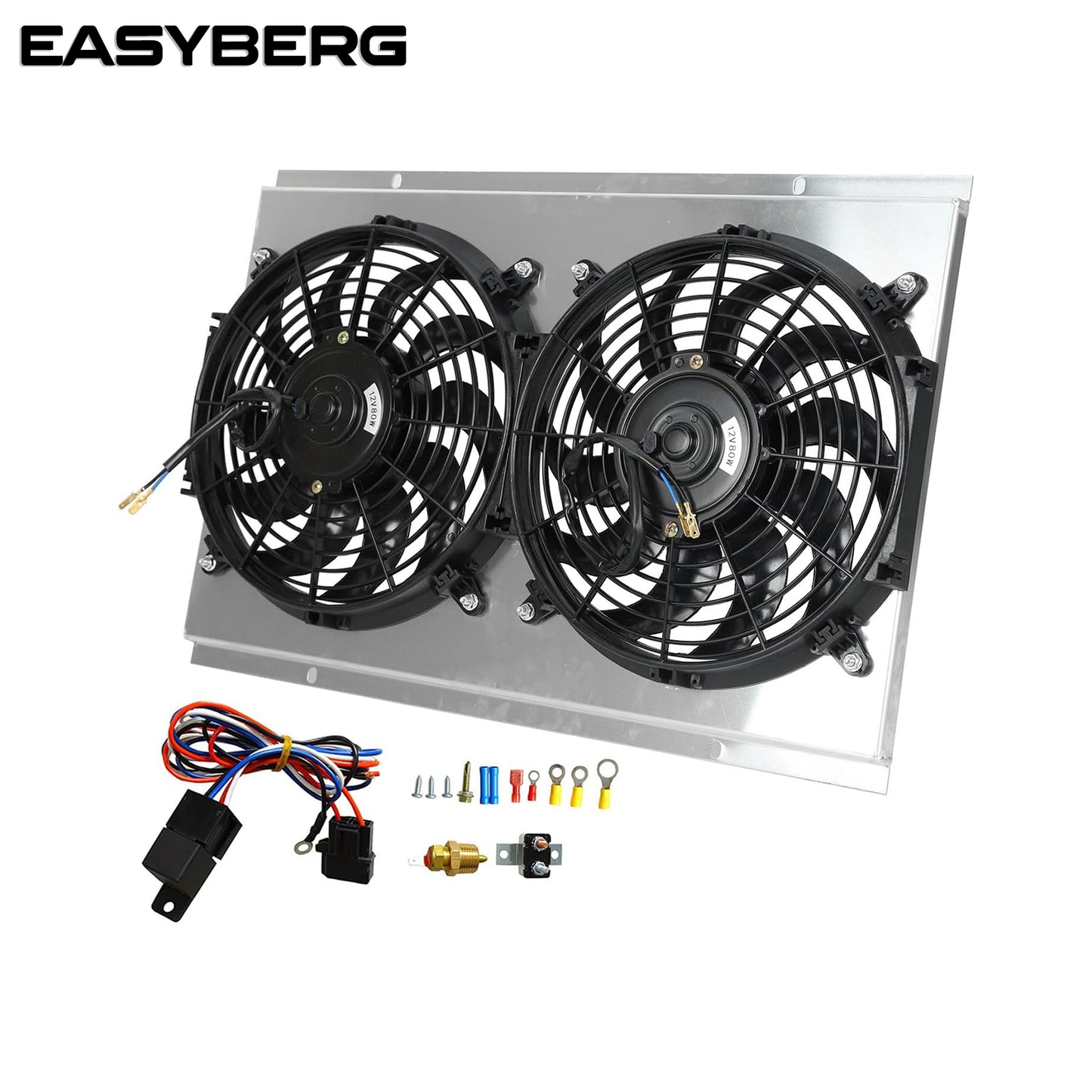 Full Aluminum Shroud+2X 12" Slim Fans+Thermostat Relay Kit Compatible with Radiator 1982-2002 Chevy S10 Blazer Corvette