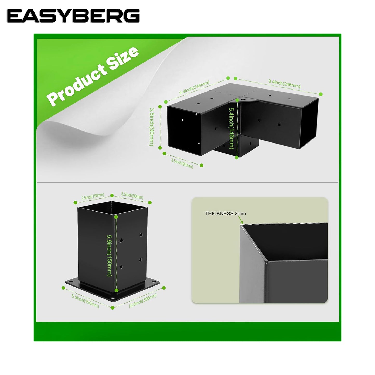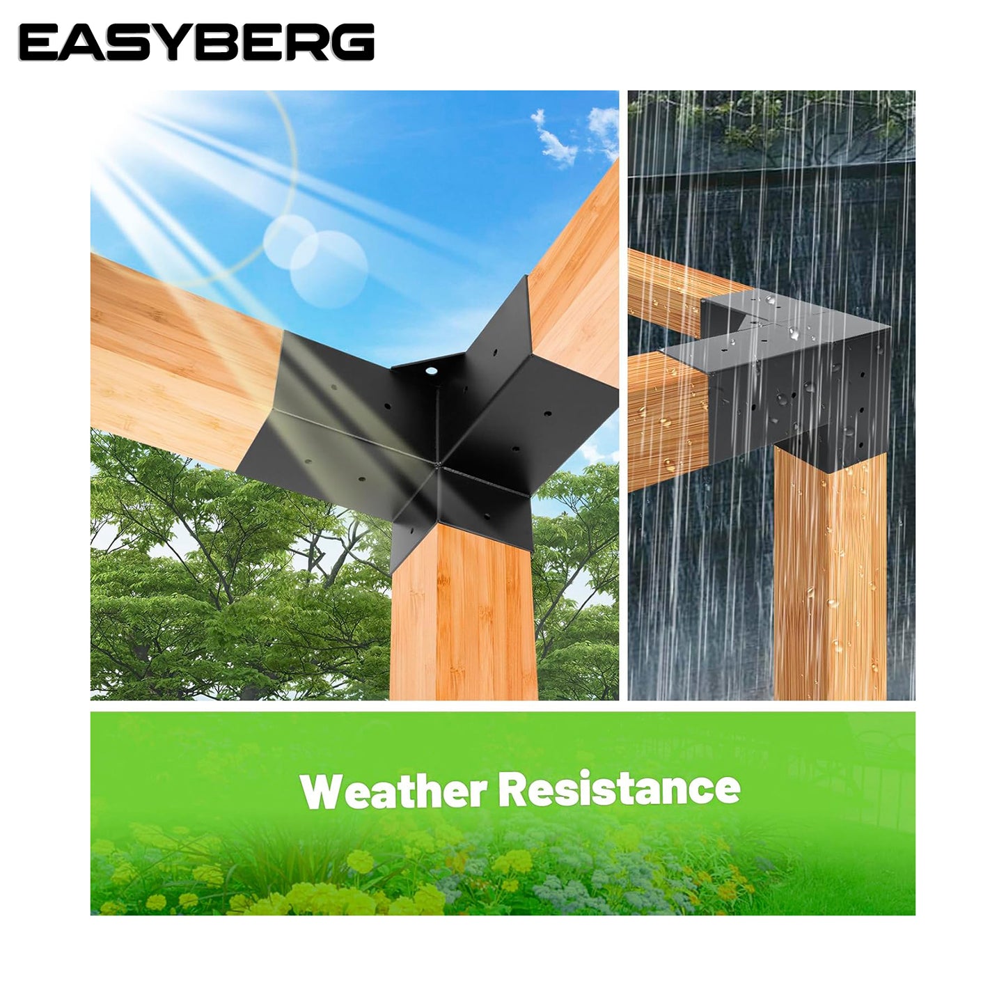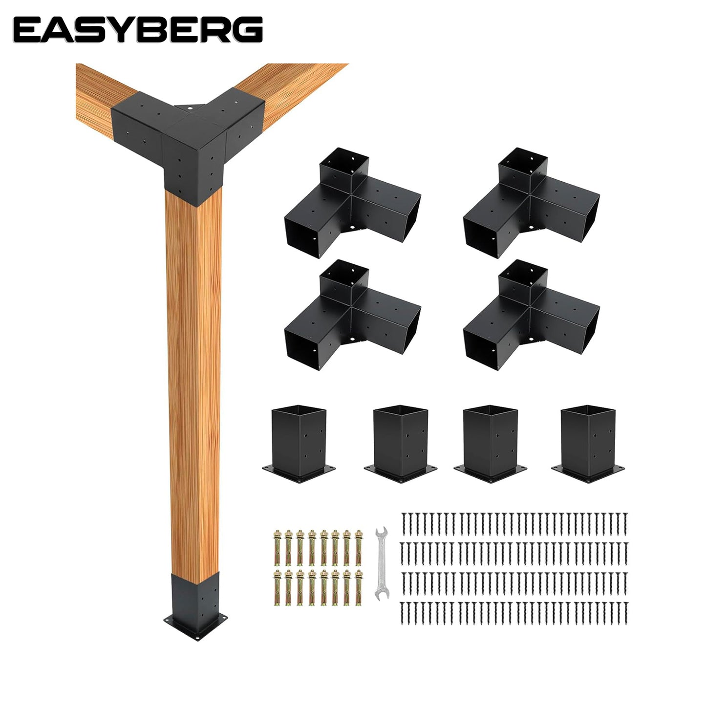 Heavy Duty Steel Pergola Brackets Kit 4-Way Right Angle Corner Bracket with Post Base and Screws for 4"x 4" (Actual 3.5" X 3.5") Lumber,DIY Pergola Suitable for Gazebo,Patio, Log Cabin Outdoor