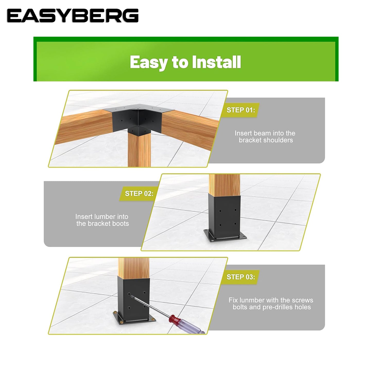 - 【Pergola Brackets Kit】Upgraded pergola bracket kit by connecting the ends of wooden beams.Build a safe and stable pergola. The material is made of high quality carbon steel with black anti-rust layer.