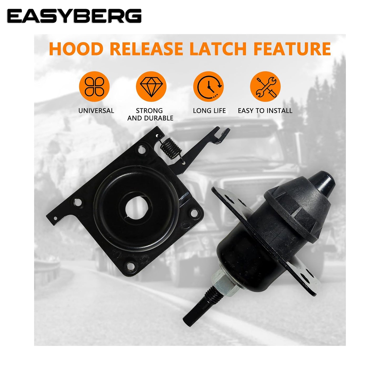 Hood Release Latch 4 PCS Set, Upper & Lower Latches Hood Release Latch, Compatible with Volvo White Truck VN VNL 2004-2017, Replaces #20498998 20565619 8074938, Black