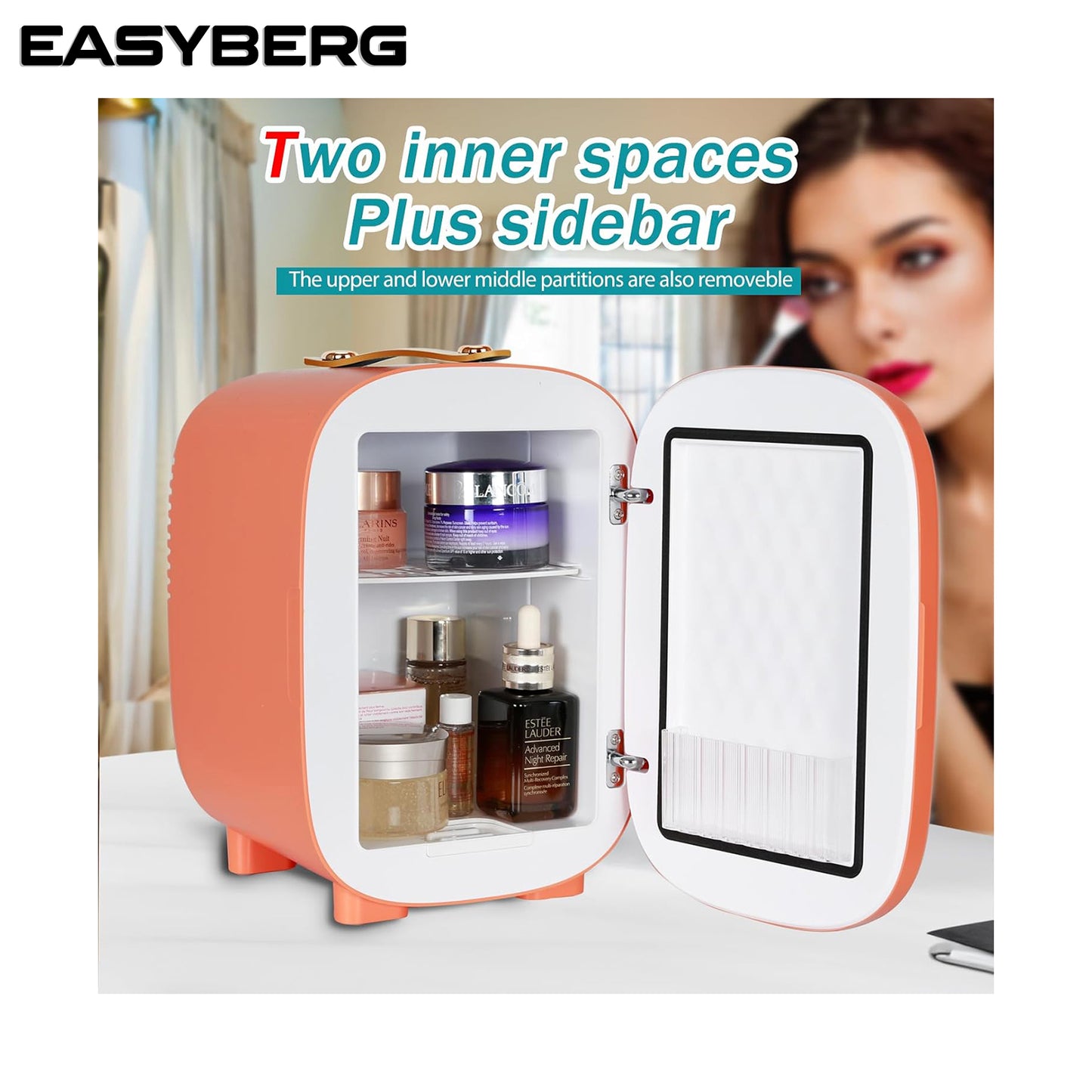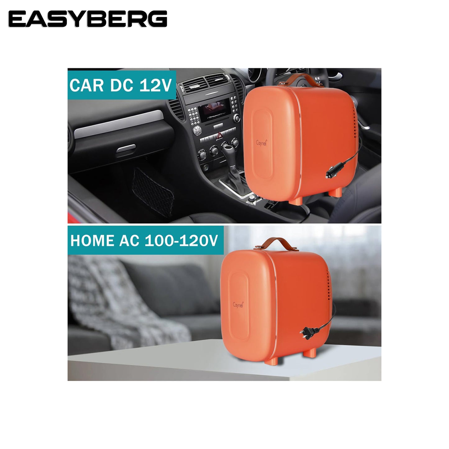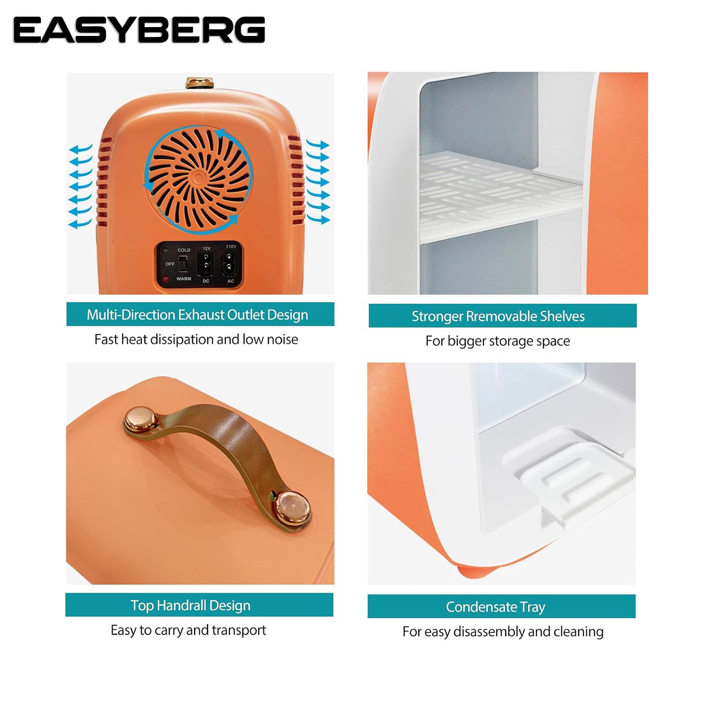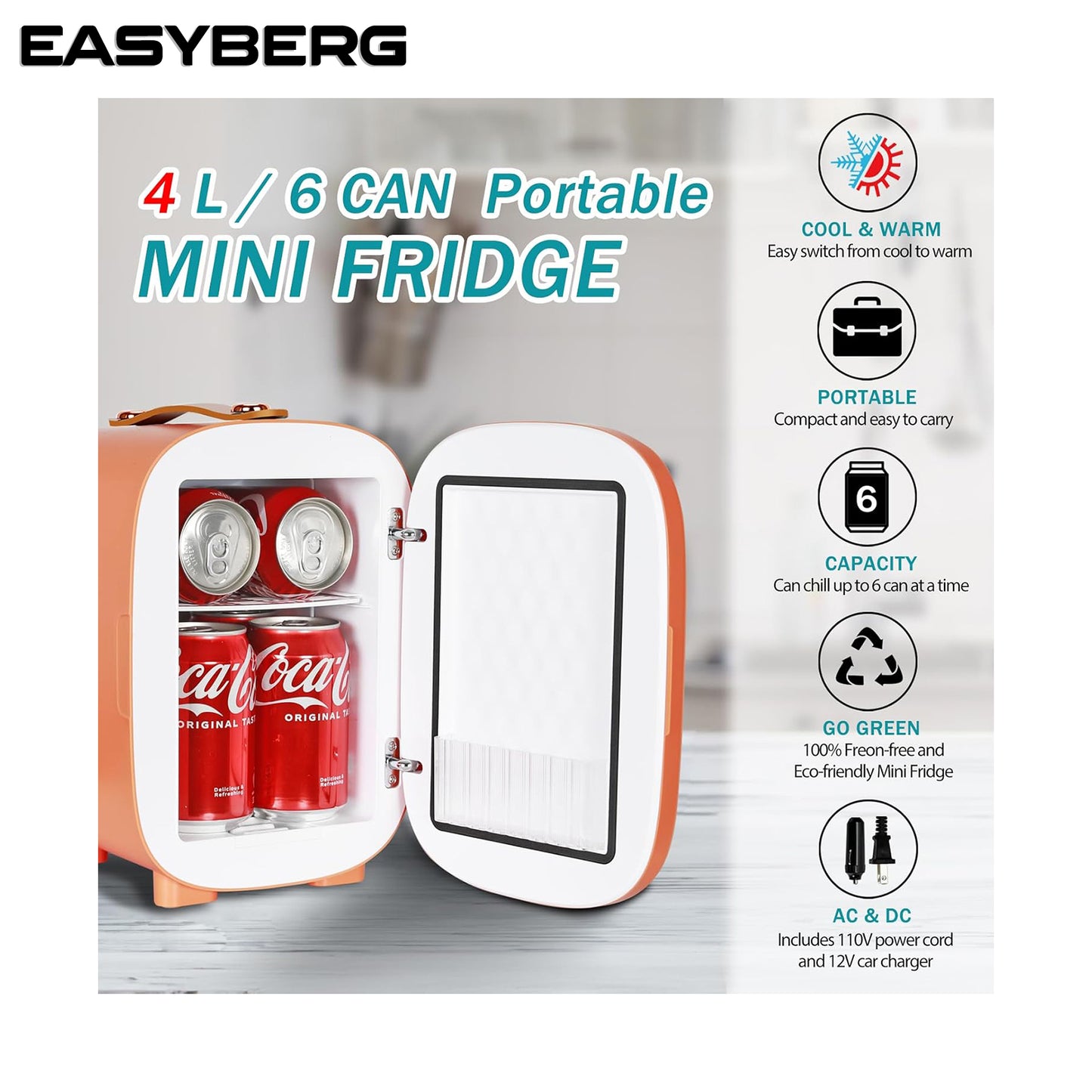 Mini Fridge Portable Thermoelectric 4L/6 Can AC/DC Cooler and Warmer for Skincare,Food,Beverage,Beauty & Makeup small Feidge for Bedroom,Car and Office (Orange)