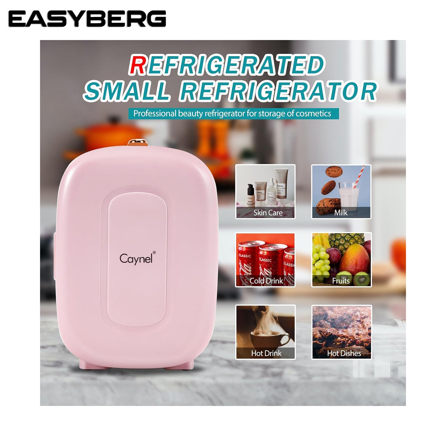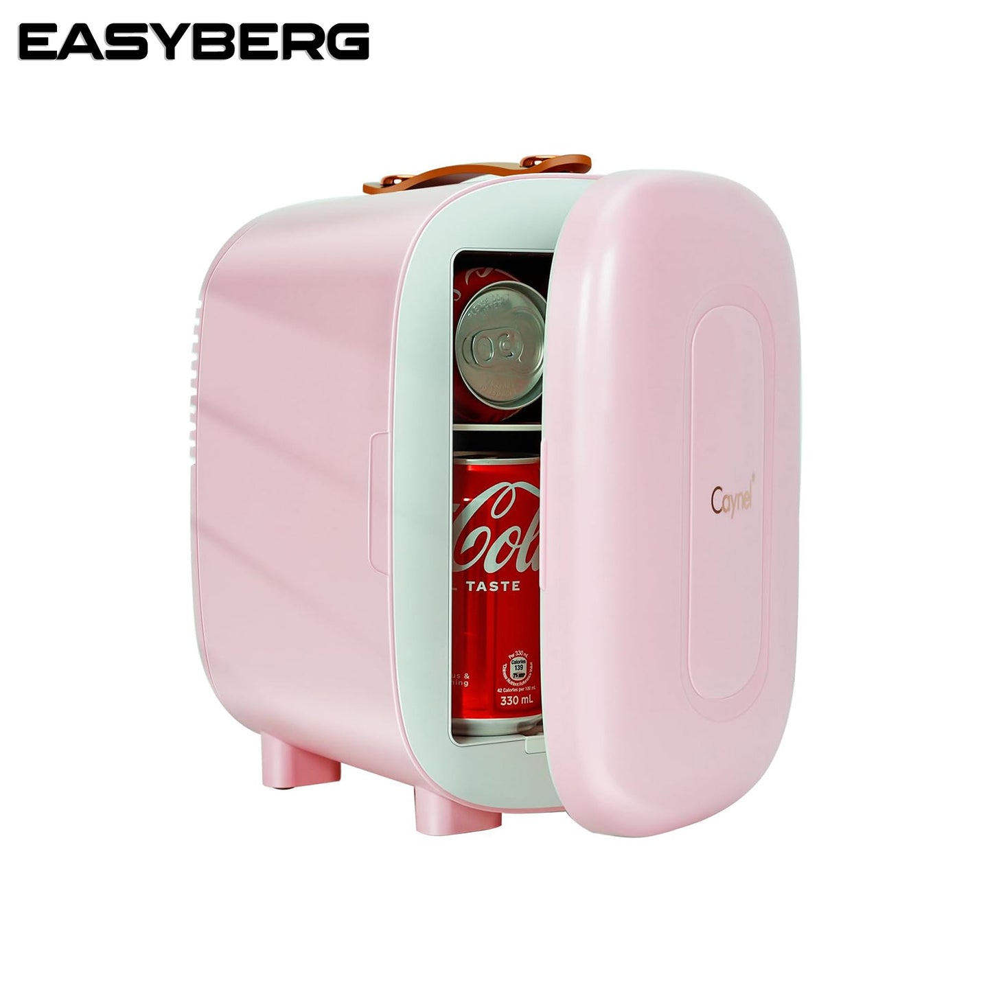 - COMPACT & PORTABLE: Caynel cooler/warmer mini fridge chills 6 12oz. cans and is perfectly portable for personal use. It’s small size, sleek design and convenient carry handle, makes it easy to take the mini fridge with you on the go!