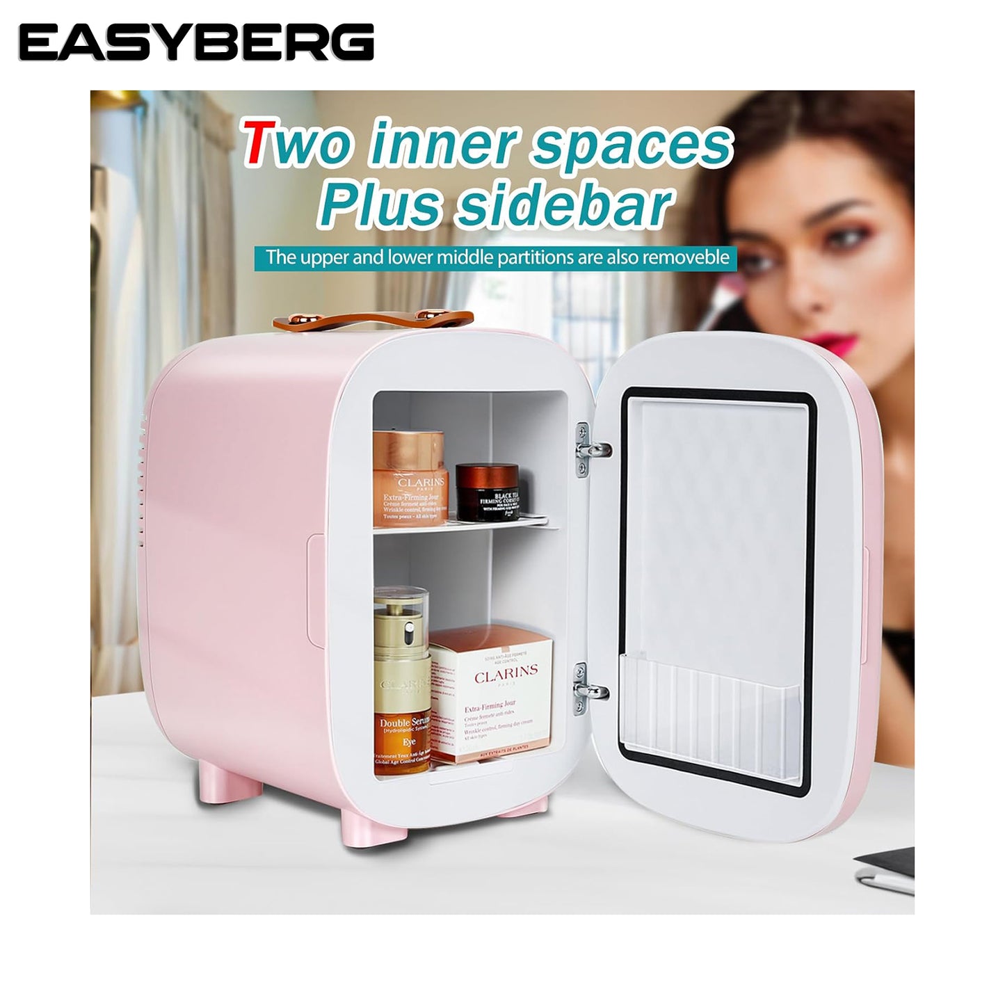 - MULTIFUNCTIONAL: its portable profile sports a generous 4-liter capacity. Great for personal spaces, road trips, camping and more! Includes removable shelf so you can store small items such as food, drinks and snacks. Efficient cooling temperature is perfect for skincare and beauty essentials. Store your skincare, personal care & beauty product faves!