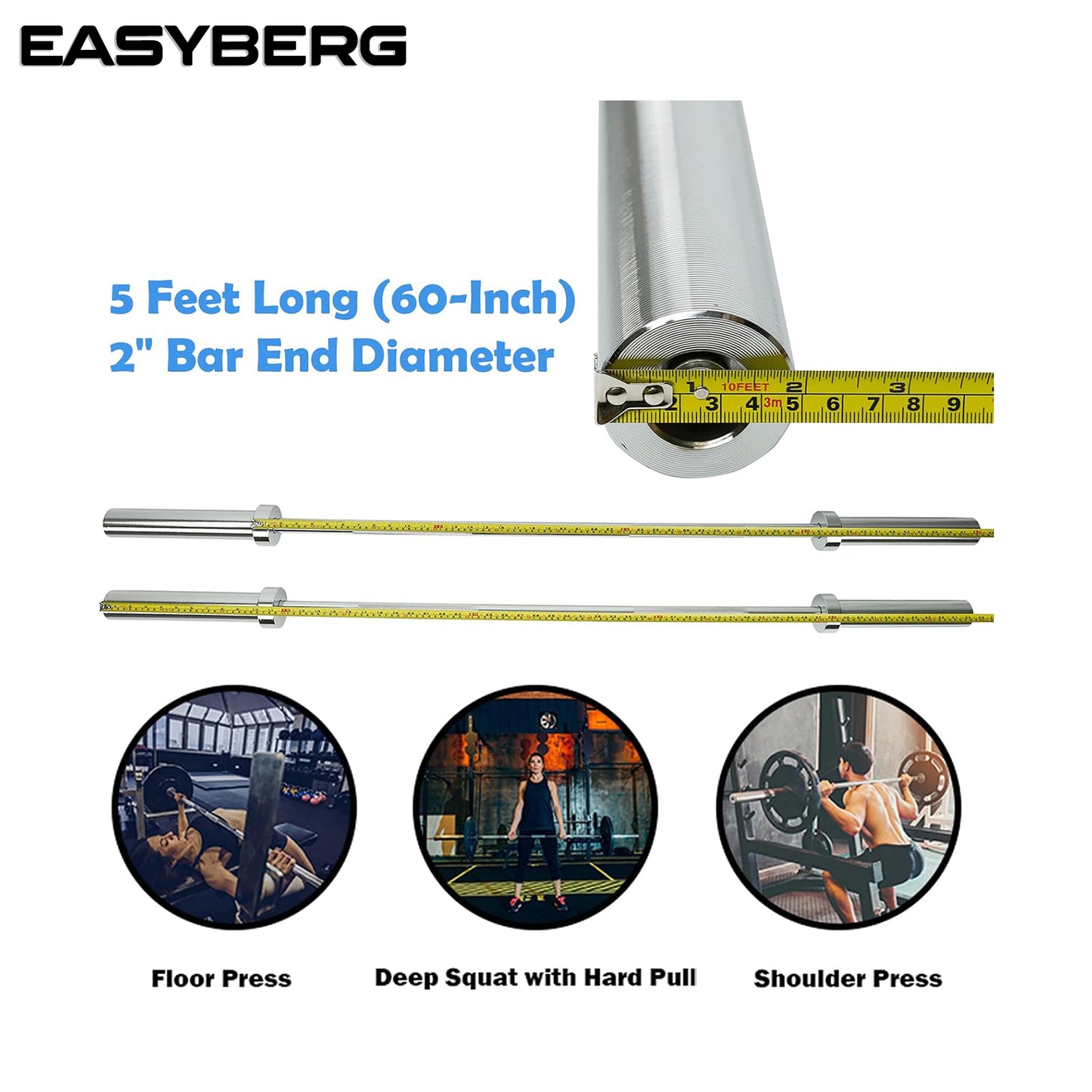 - Chrome, 5-Foot: 5 Feet Long (60-Inch), 2" Bar End Diameter