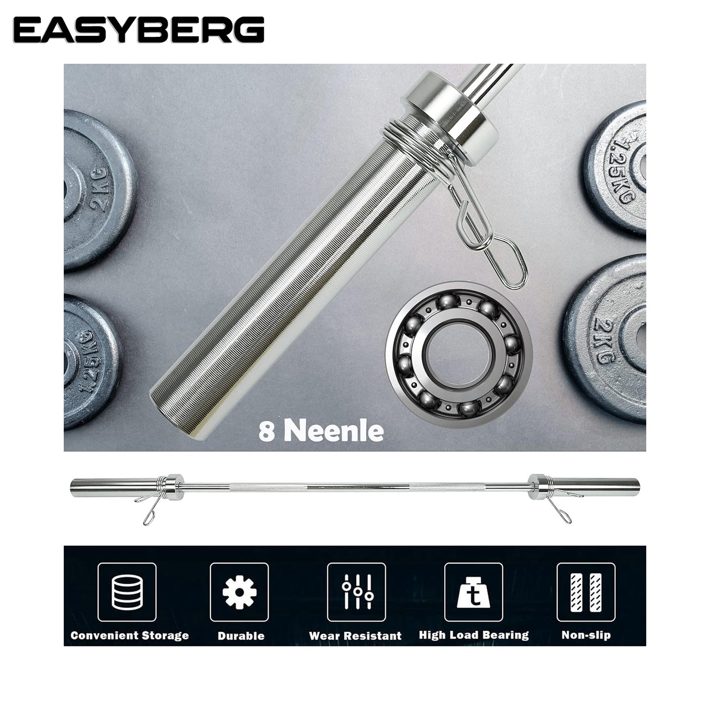 - 1.97" bar end diameter to ensure bars fit all standard plates with holes 2"; Can be used with dumbbell plates too.