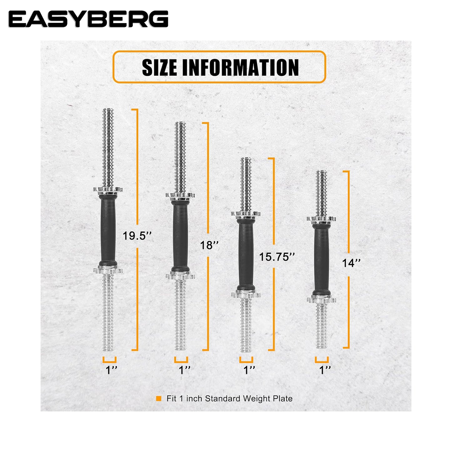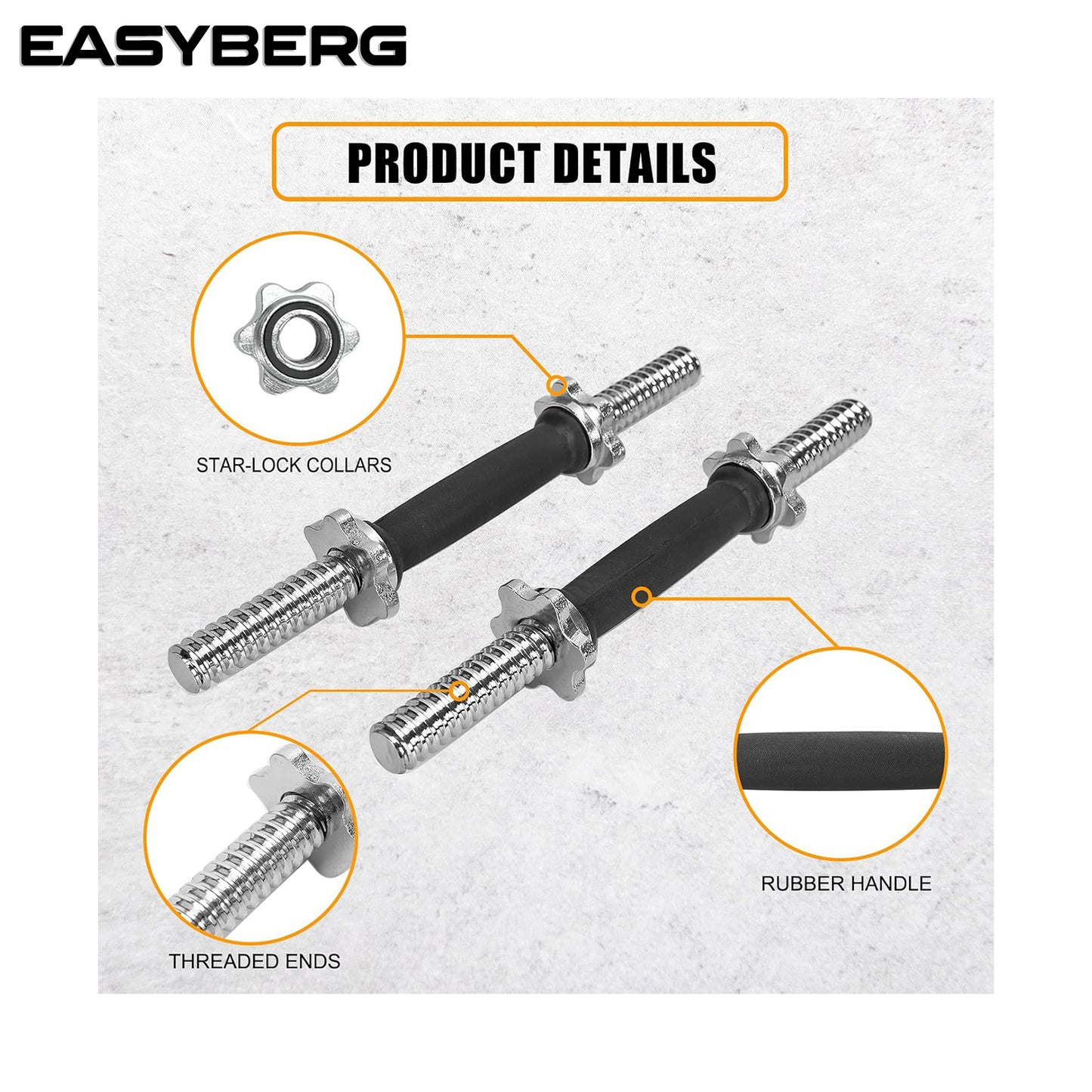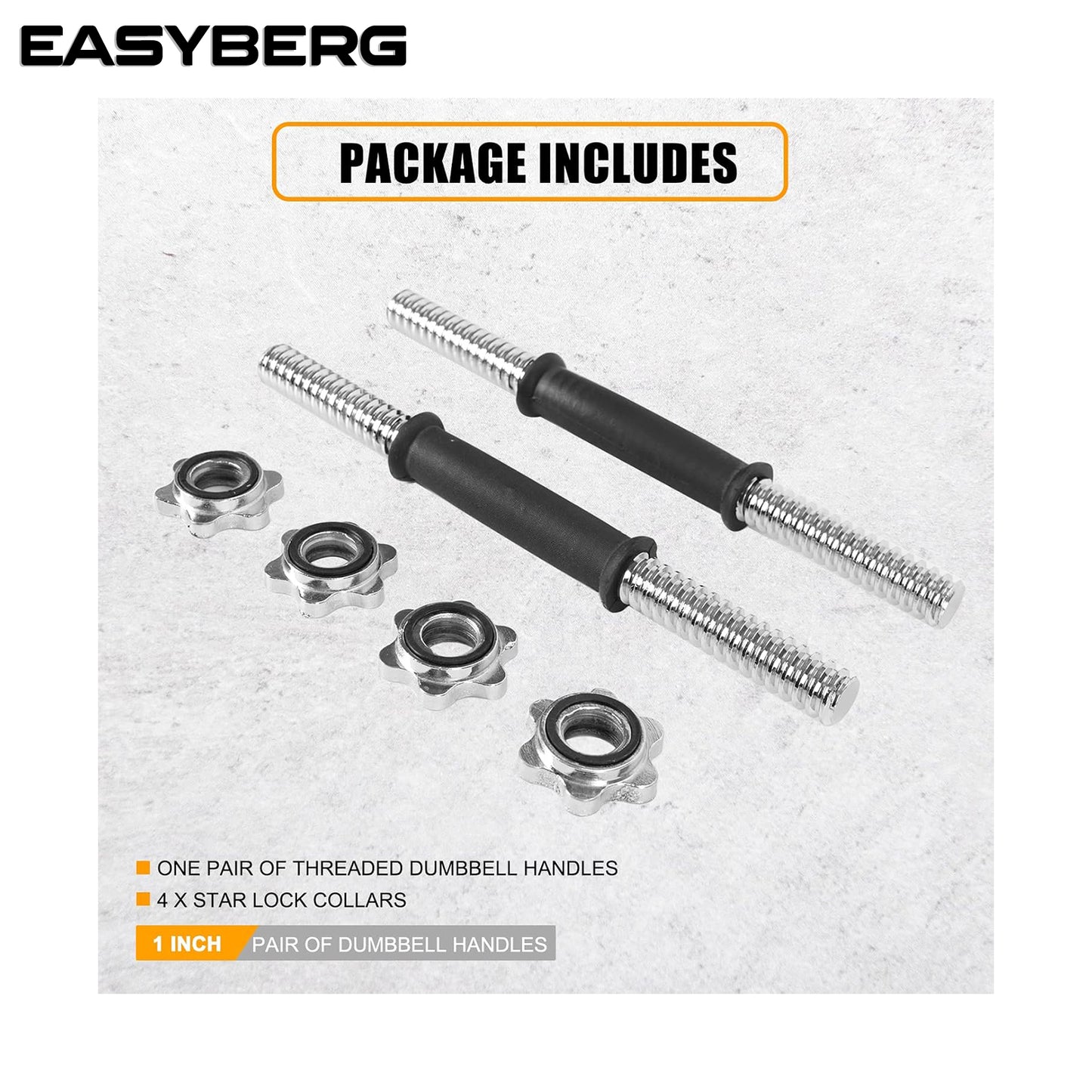 Threaded Dumbbell Rubber/Chrome Handles 1 Inch Pair, Adjustable Dumbbell Bar Handles, Fits Standard Weight Plates with 1” Diameter, for Gym Workouts, Exercise, Weightlifting, Sold in Pair