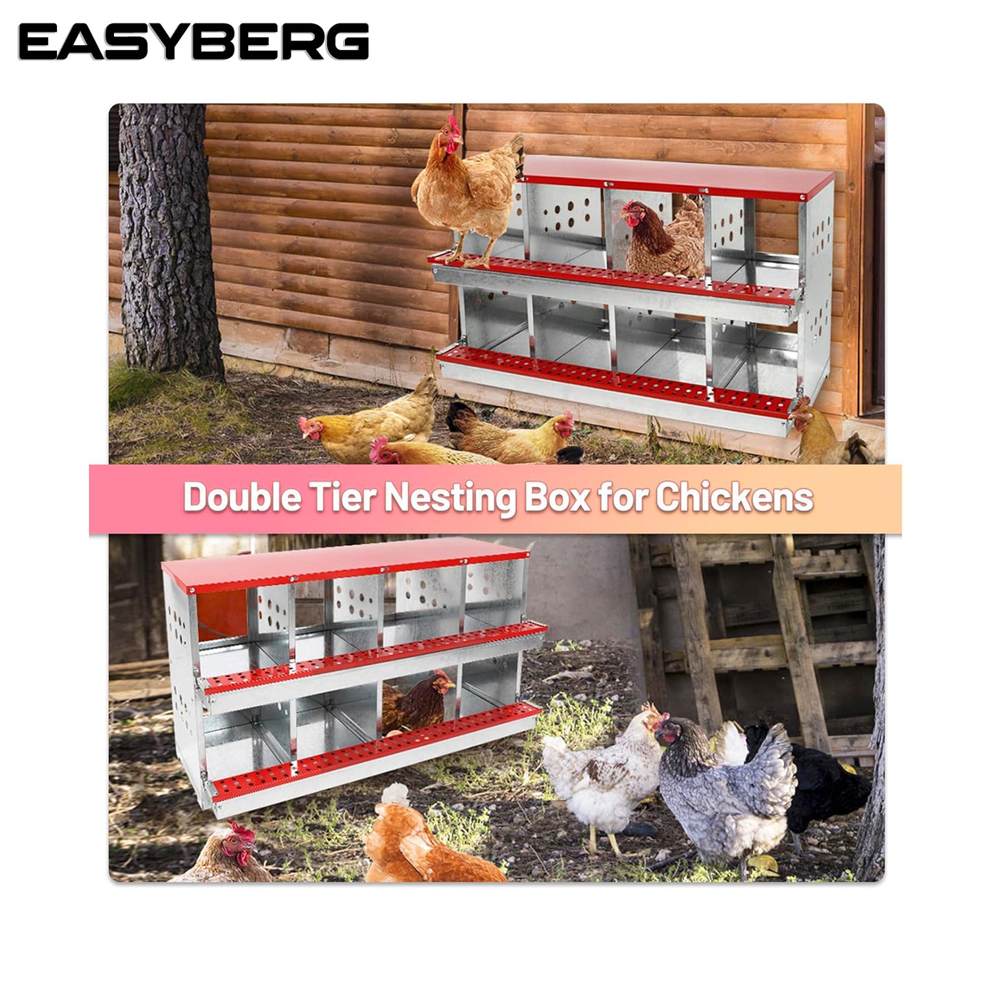 - Double Tier Chicken Nest Box: Double tier chicken nest boxcan better manage your chickens' activity space and make your chicken coop less crowded. Pre-drilled vents in the partitions promote air flow in the coop.